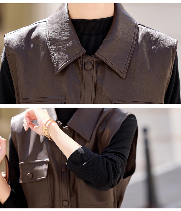 HR YF2620韩系气质PU皮马甲套装裙系带收腰显瘦百褶裙两件套 商品图3