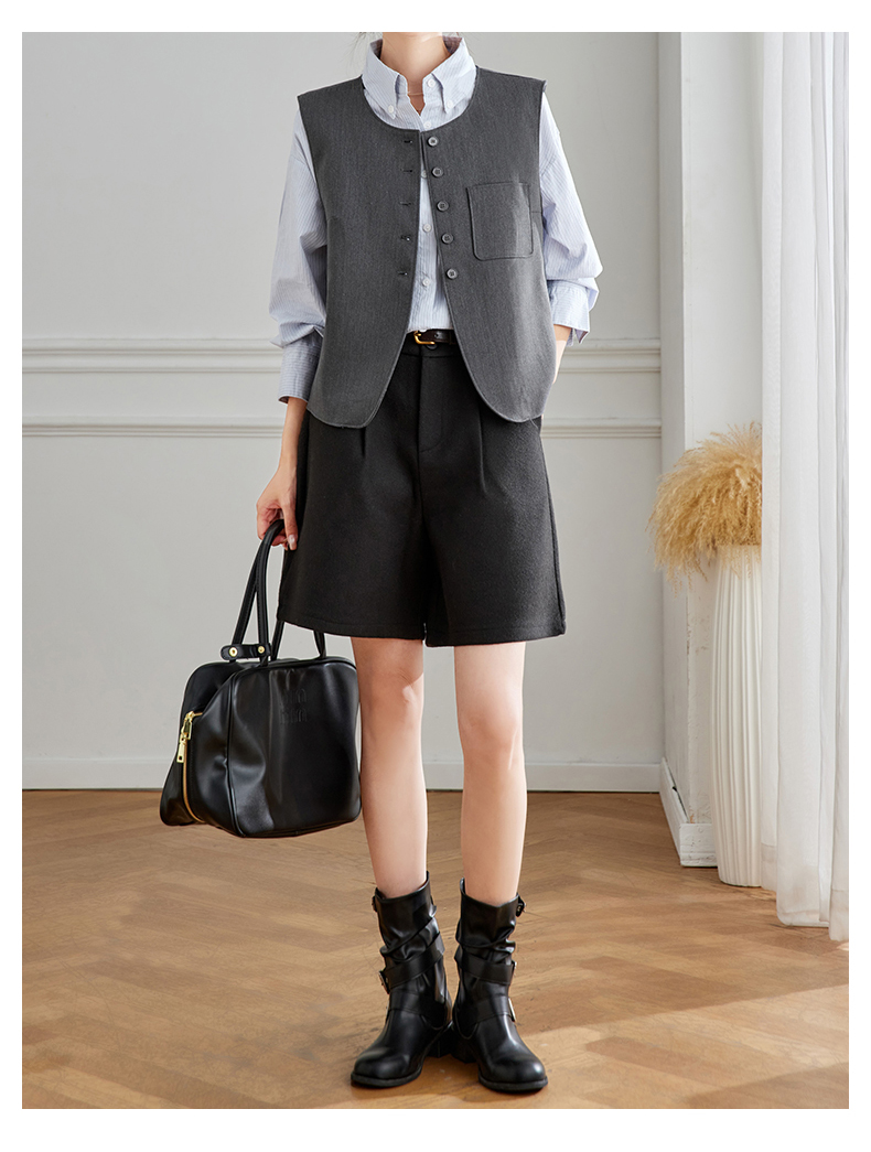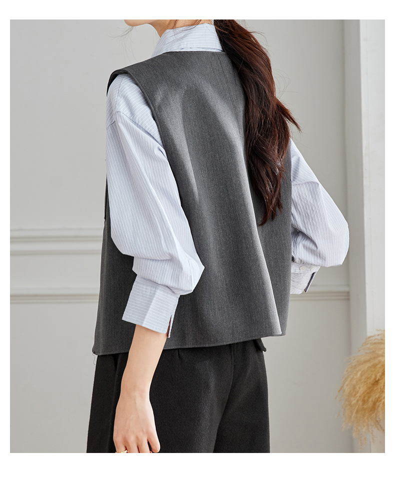 馥迦通勤极简马甲条纹衬衫