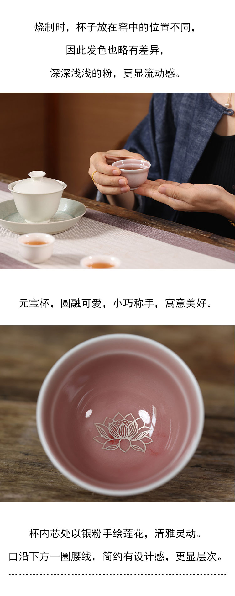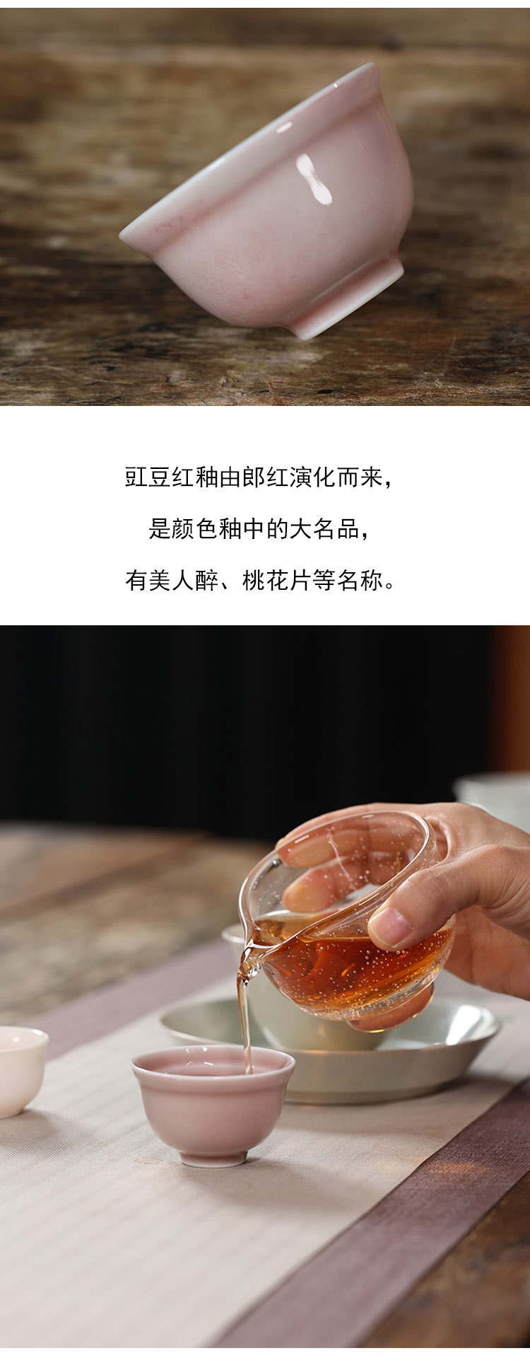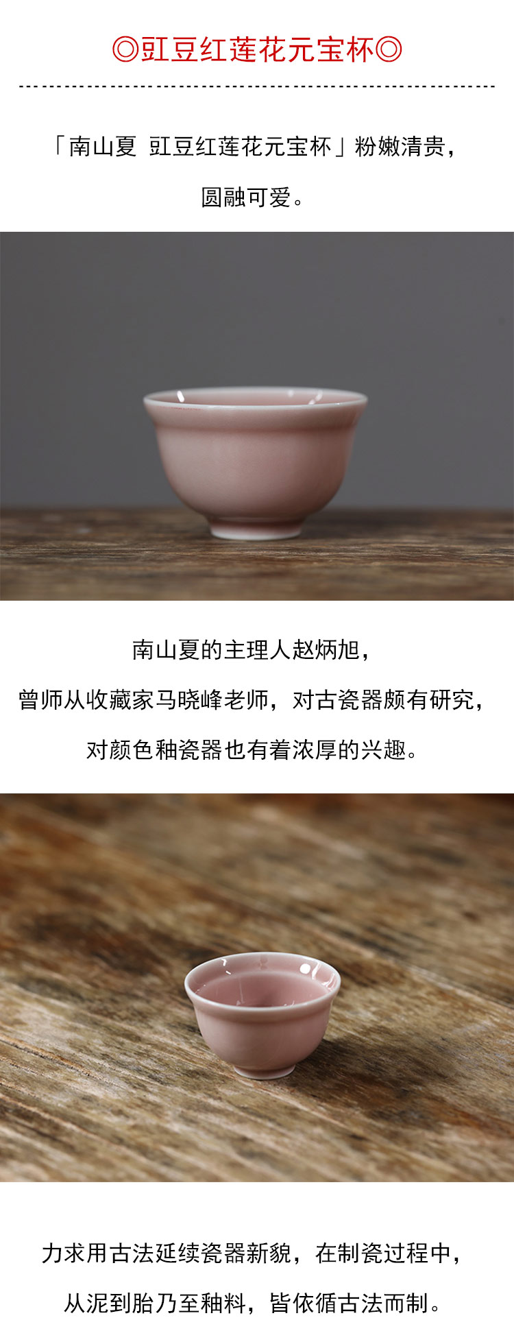 茶香记 南山夏豇豆红莲花元宝杯40ml品杯粉嫩清贵圆融可爱陶瓷