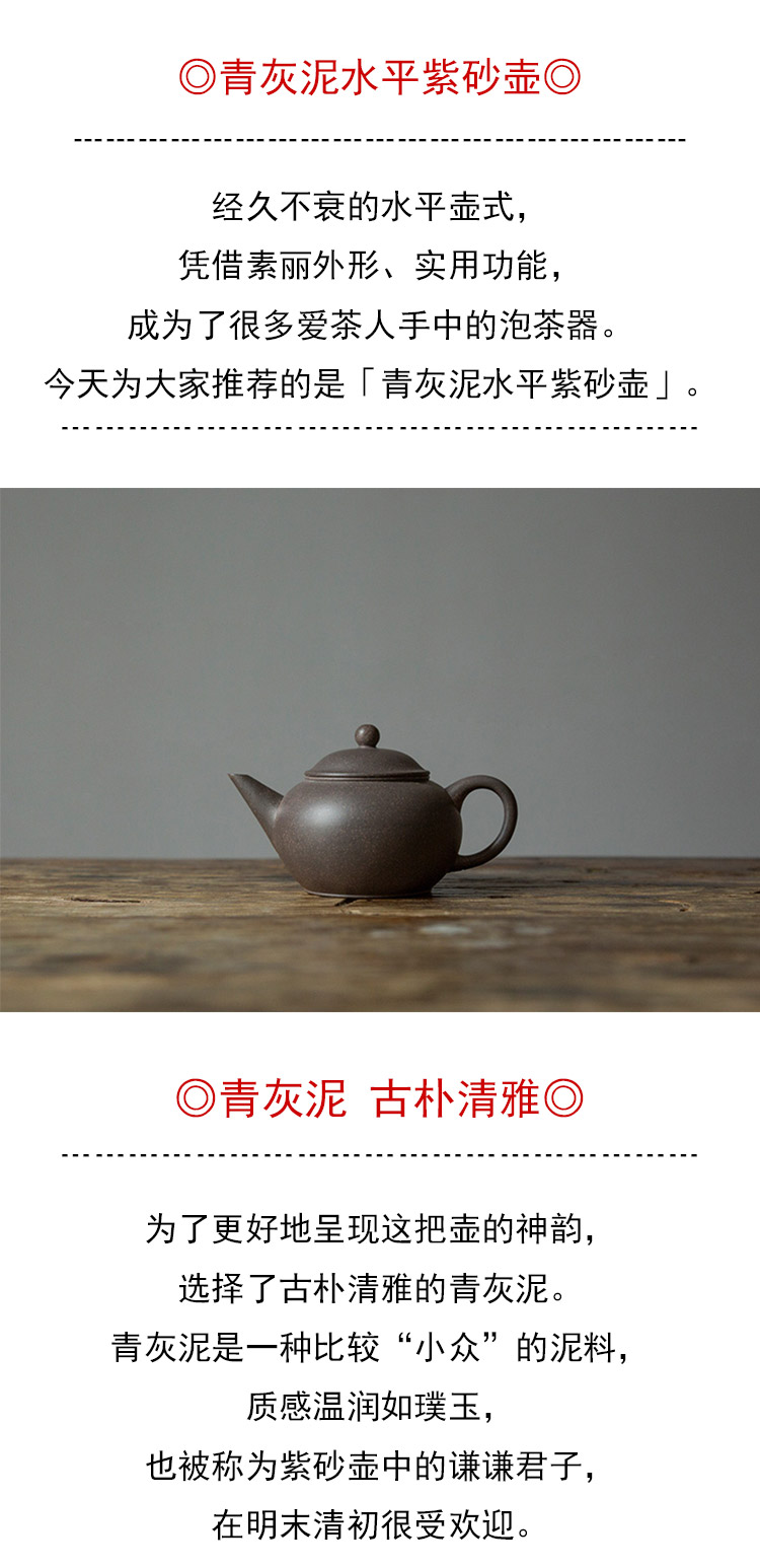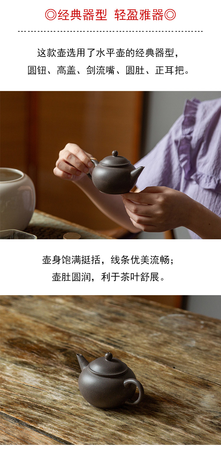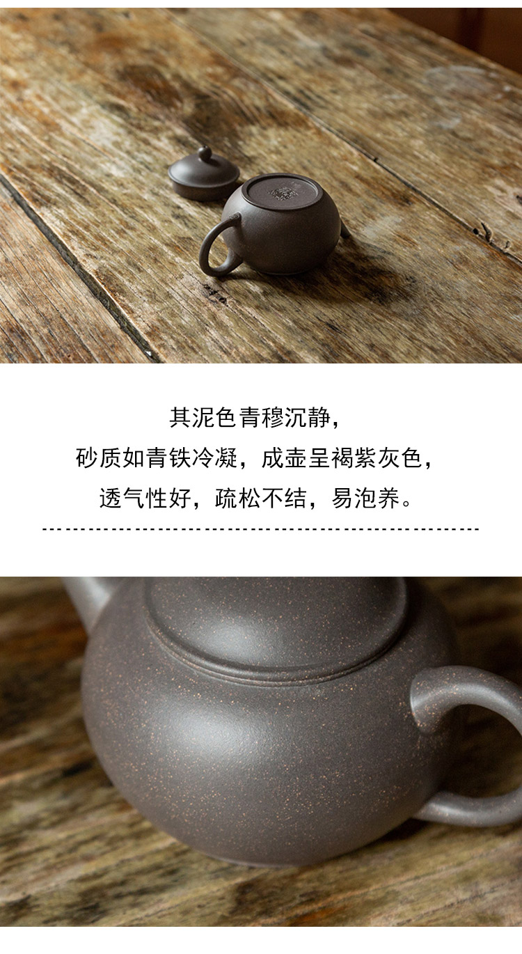 茶香记 青灰泥水平紫砂壶 茶壶 古朴清雅 圆融饱满 经典器型 易泡养