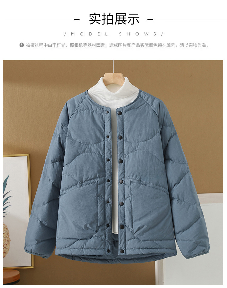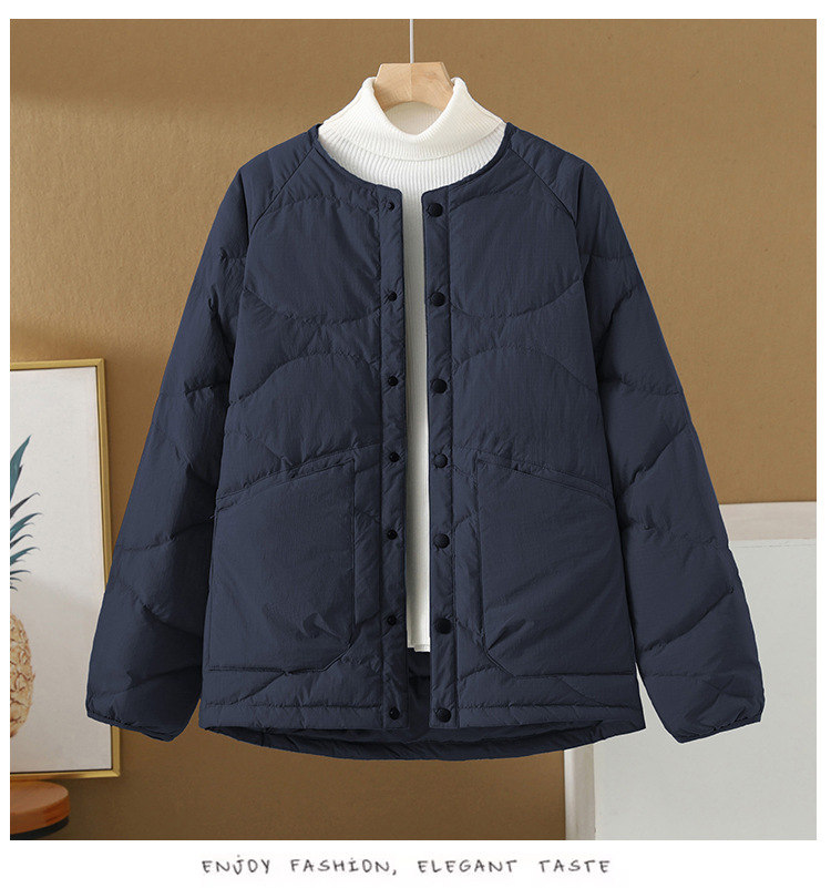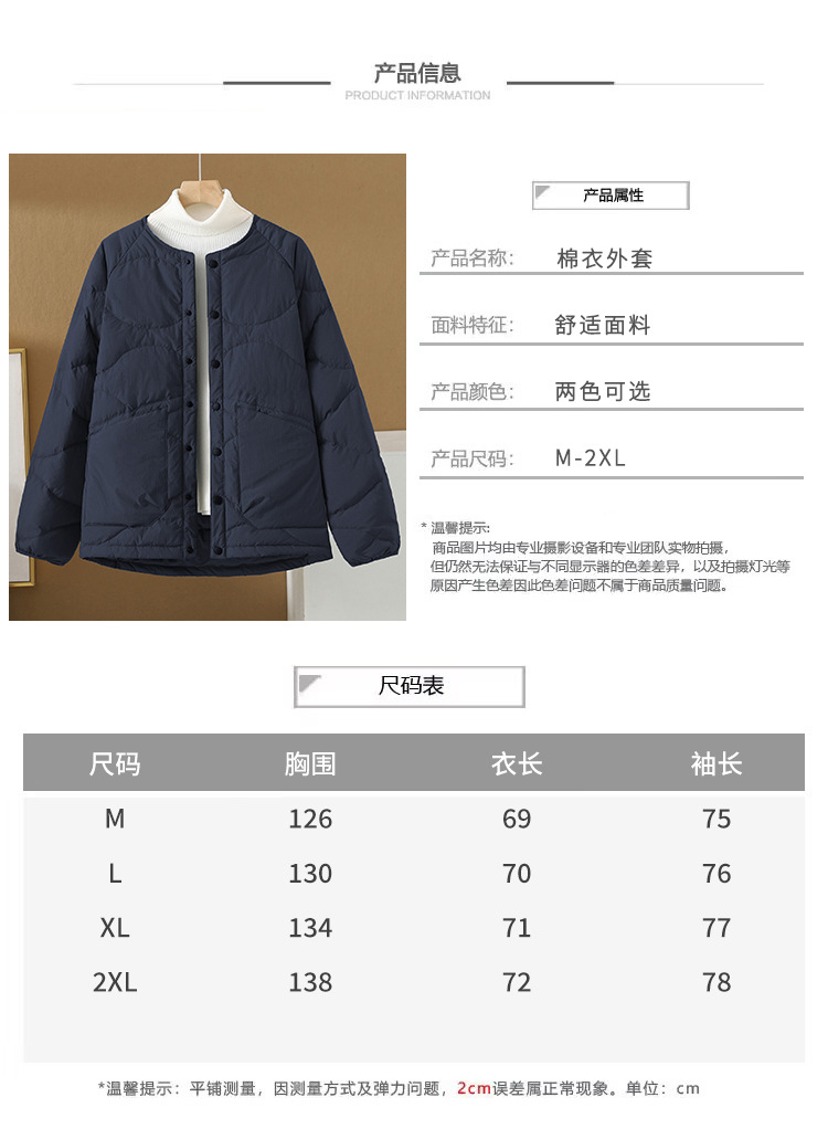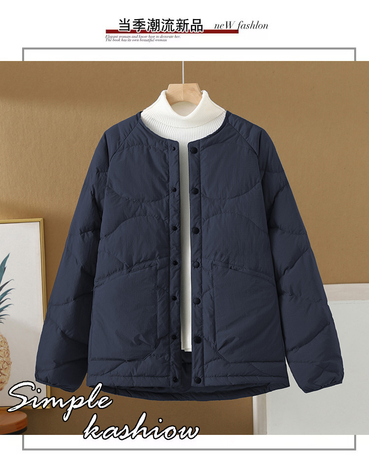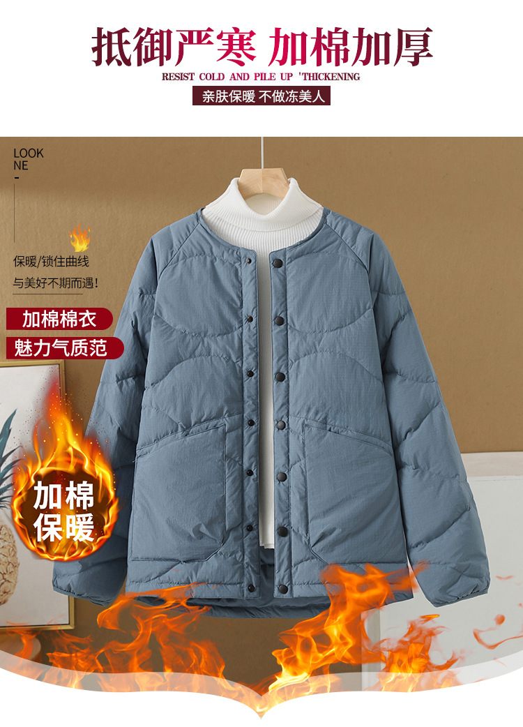 XJM78402025冬季新款纯色文艺宽松休闲简约舒适夹棉圆领棉服外套上衣女