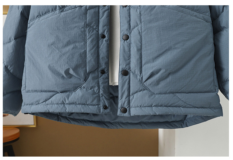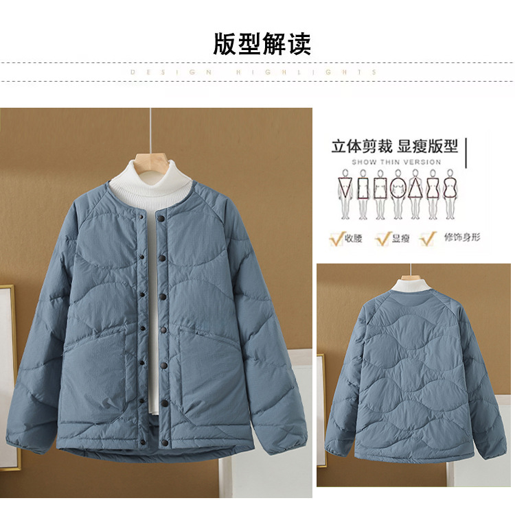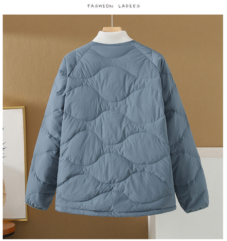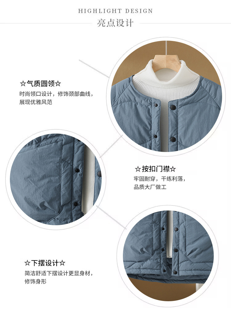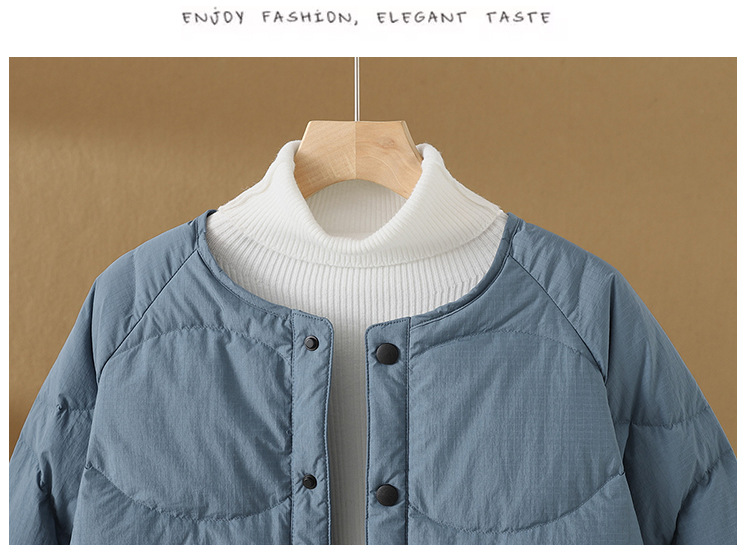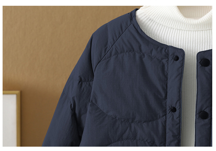 XJM78402025冬季新款纯色文艺宽松休闲简约舒适夹棉圆领棉服外套上衣女