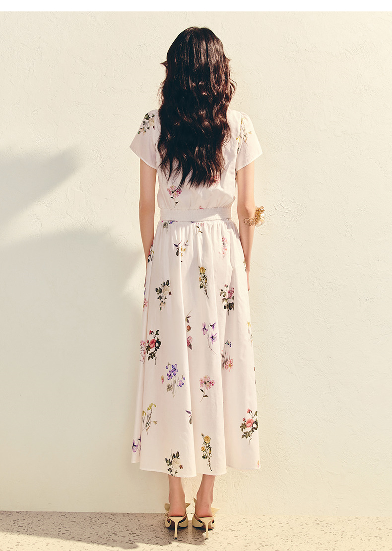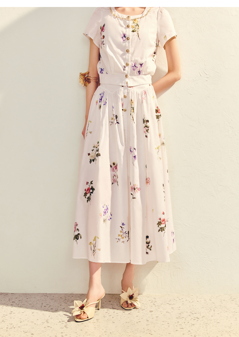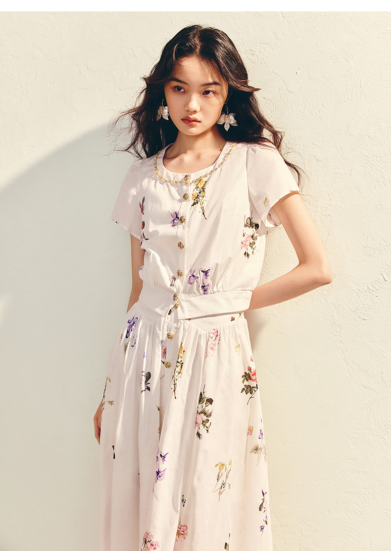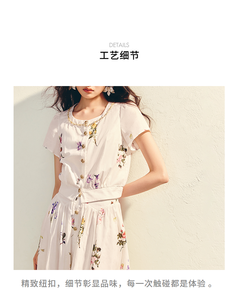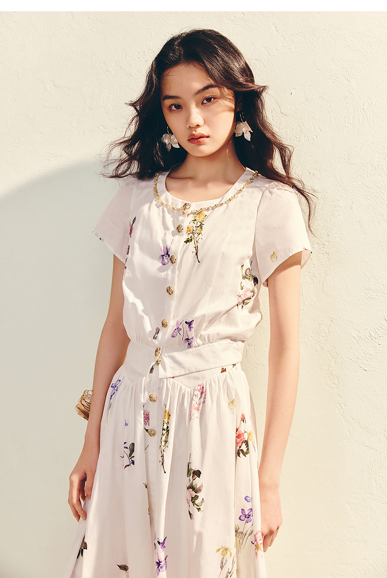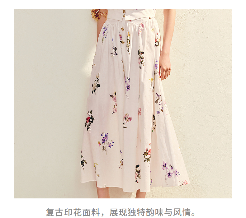 MAXRIENY法式田园印花衬衫上衣半裙长裙套装女夏款度假两件套(货号:MS86TP051SK031)