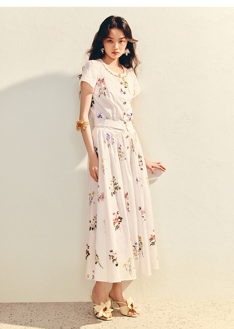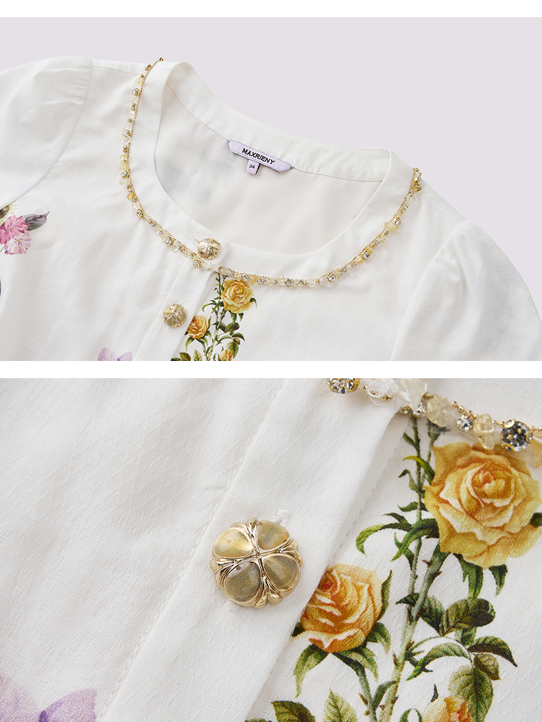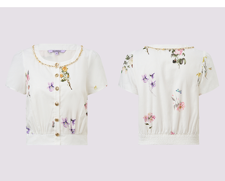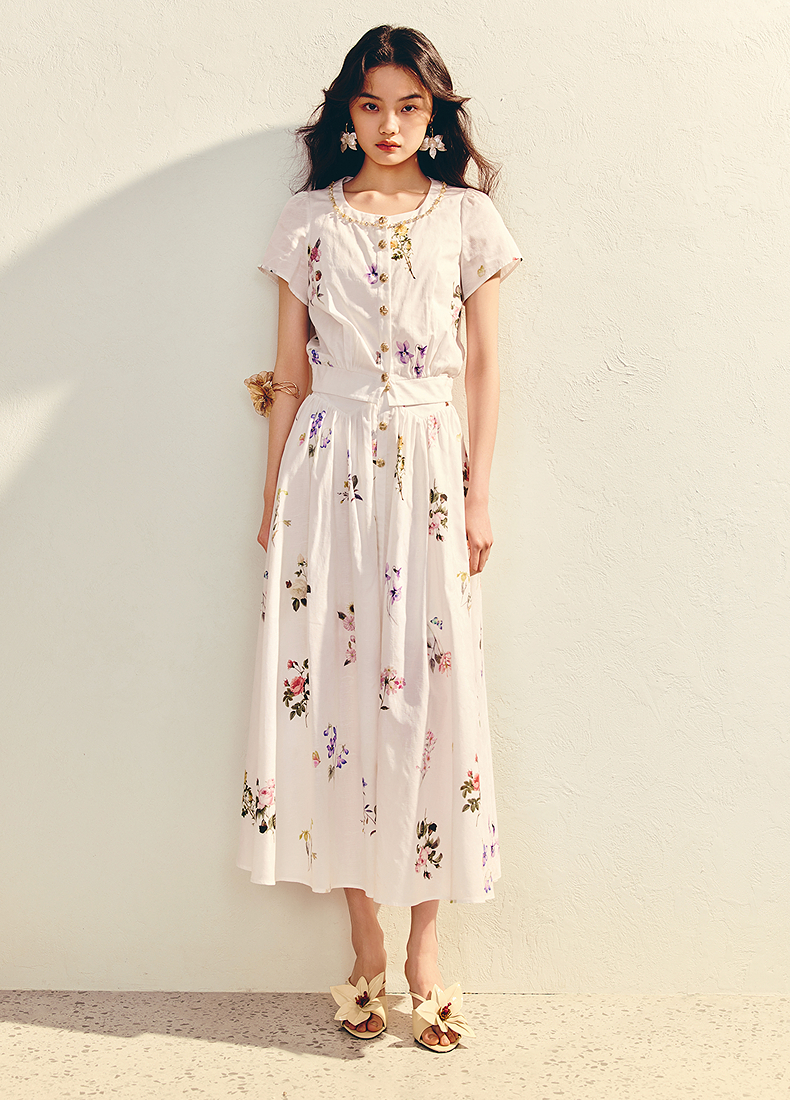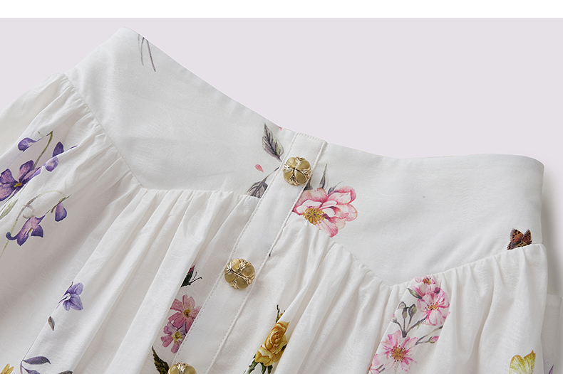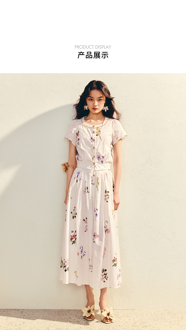 MAXRIENY法式田园印花衬衫上衣半裙长裙套装女夏款度假两件套(货号:MS86TP051SK031)