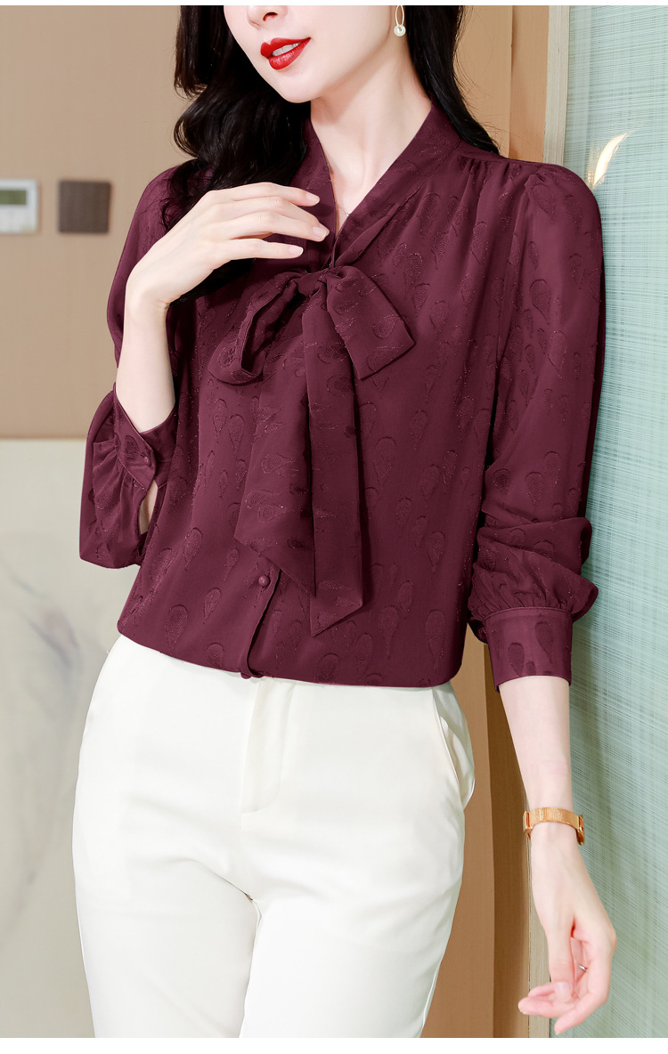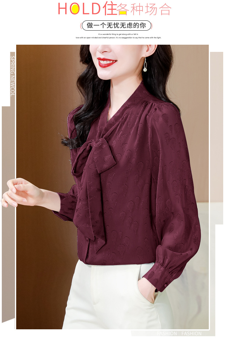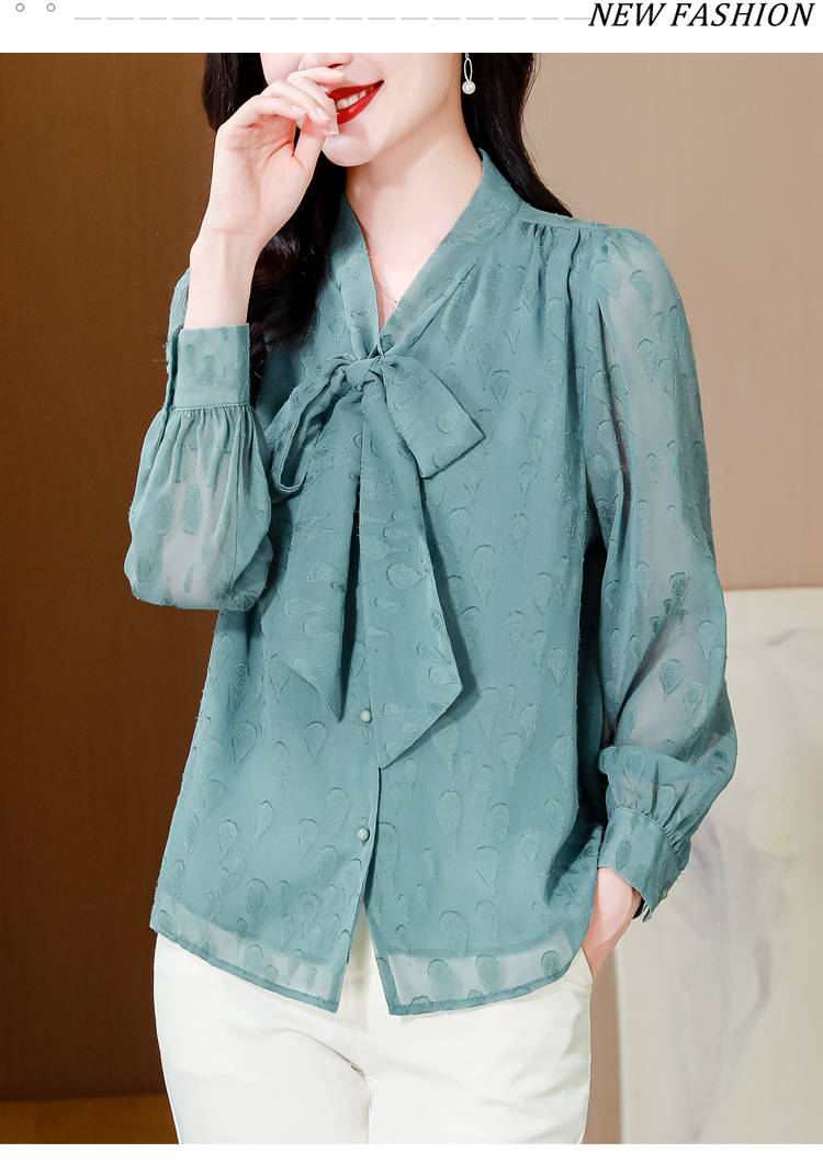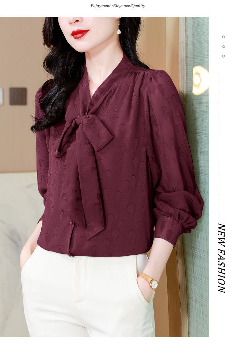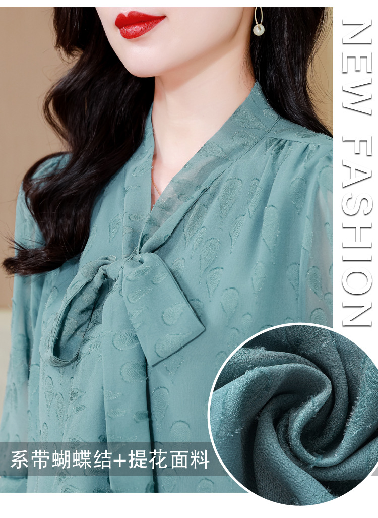 KQL369H9981系带雪纺提花显瘦长袖上衣2025秋新款时尚百搭通勤气质衬衫女