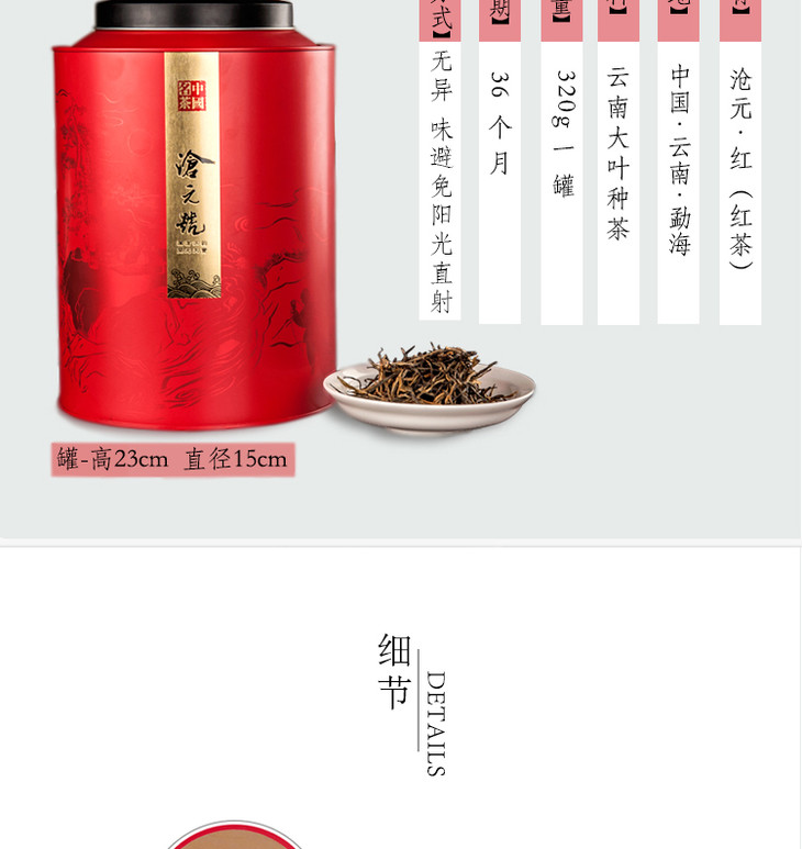 热销-沧元号-沧元红 320g 大叶种普洱茶叶 铁罐装红茶散茶