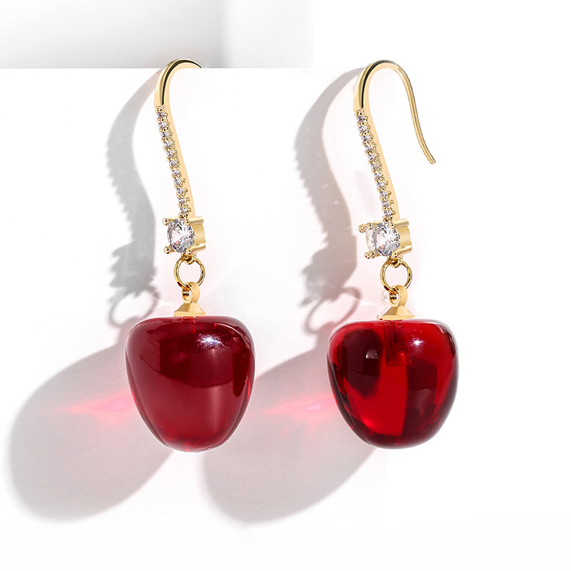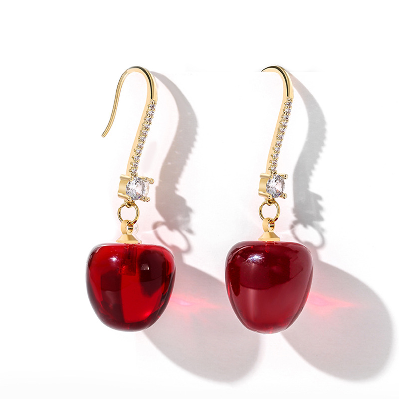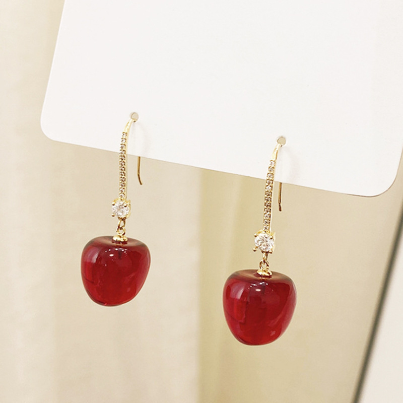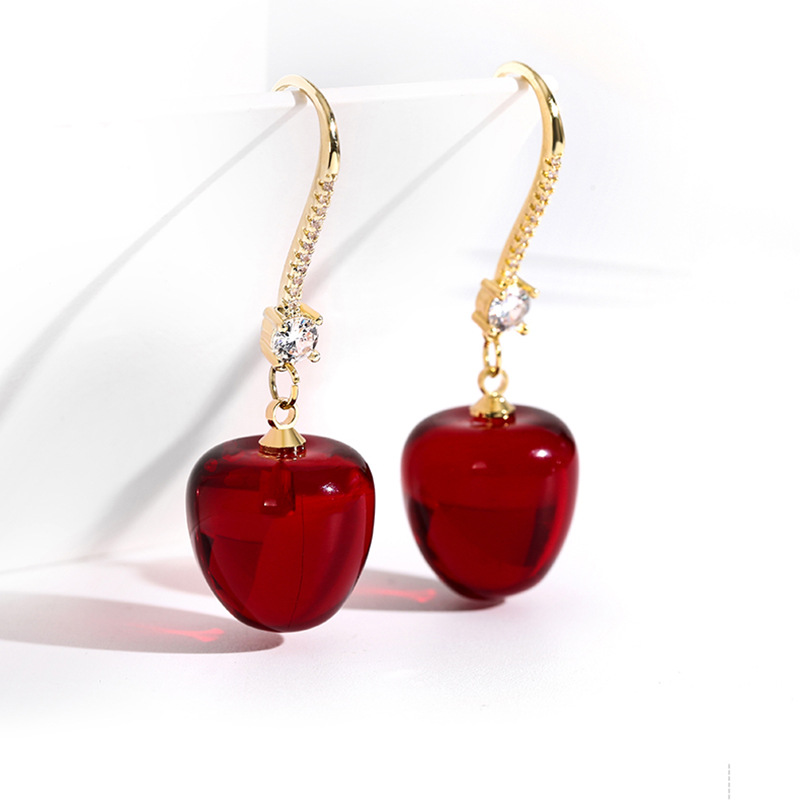 JU-AD0322红色樱桃耳环2021新款车厘子耳饰日韩网红水果耳坠女气质短款耳钩