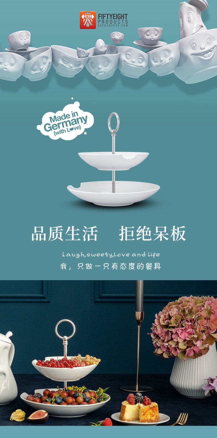 【Fiftyeight 】德国原产陶瓷卡通点心盘蛋糕盘餐盘双层 深盘