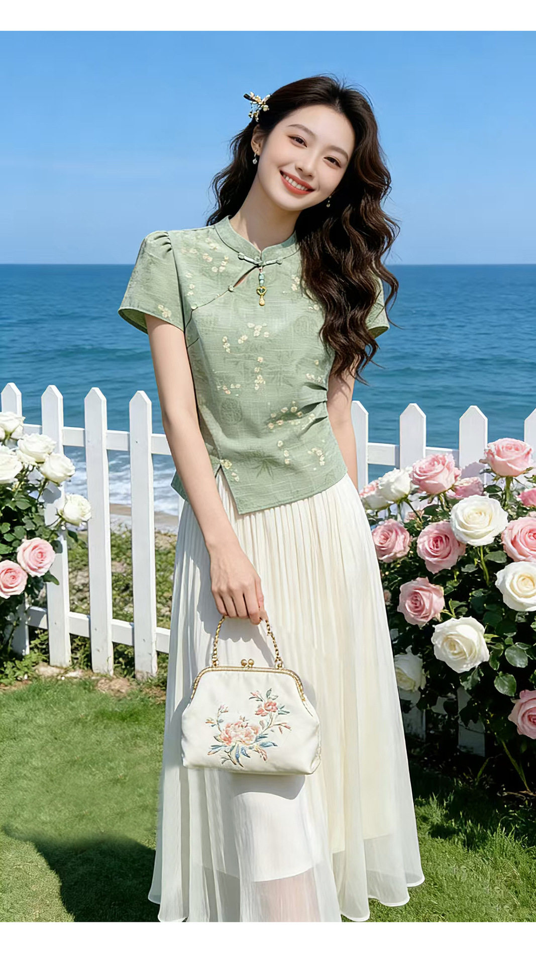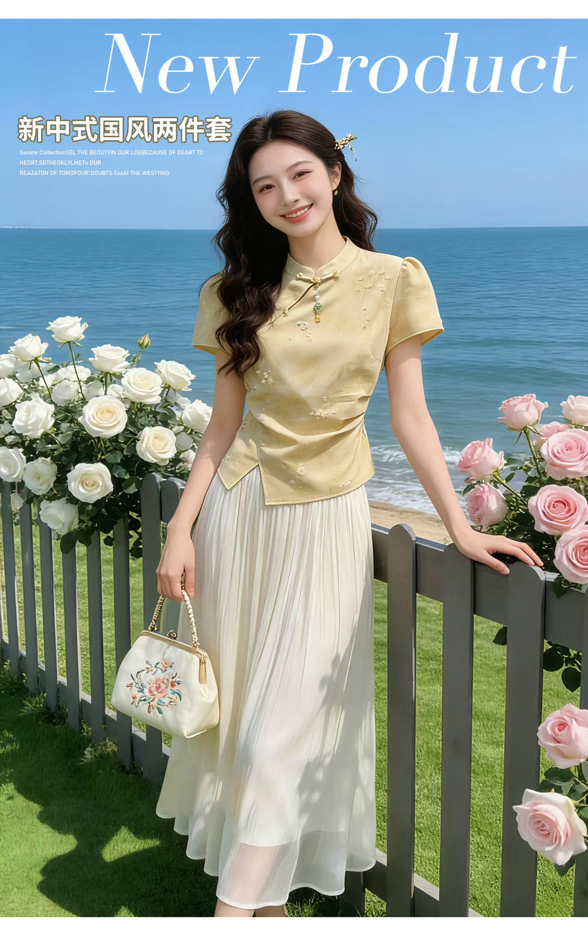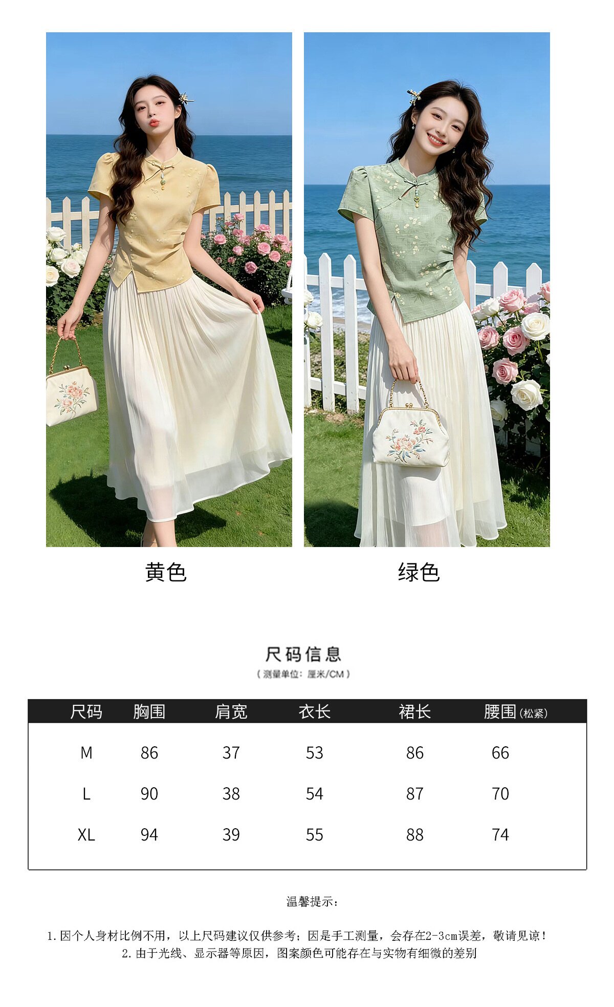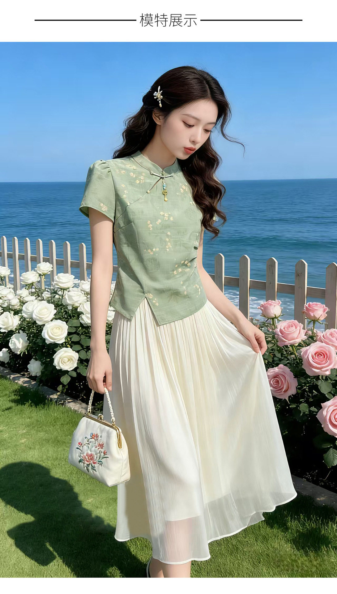 「自」全新升级【铂金会员275/天猫369/差价94】(99800)洛诗琳2026新中式国风绣花上衣+高腰气质中长半身裙两件套