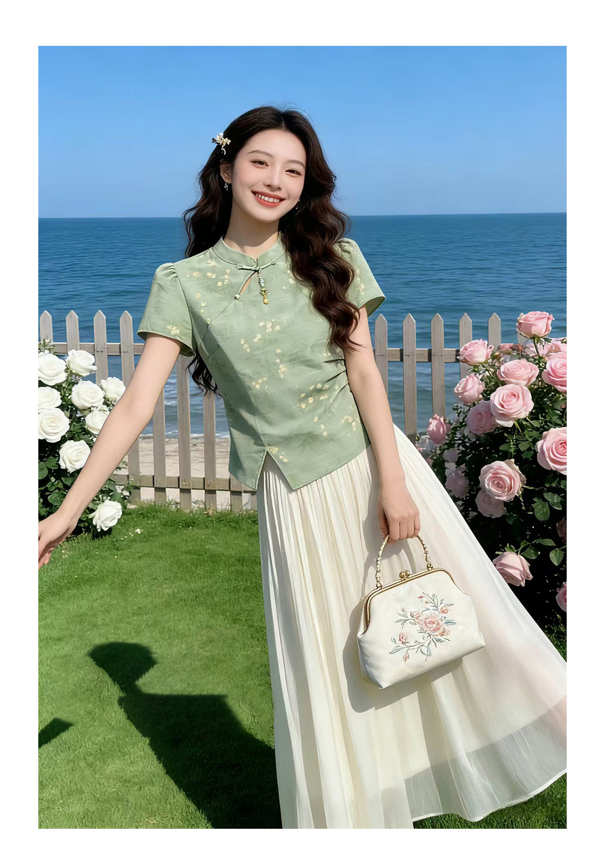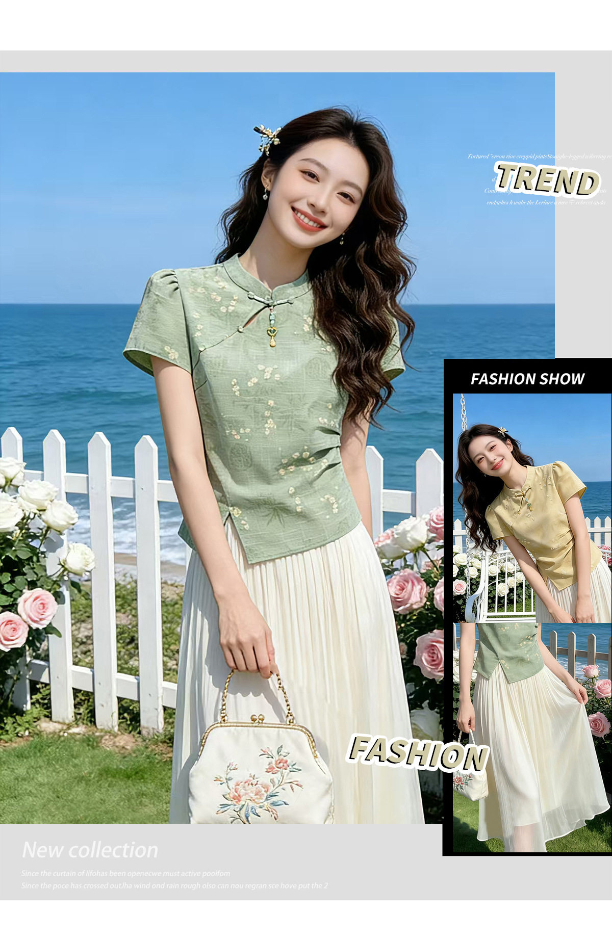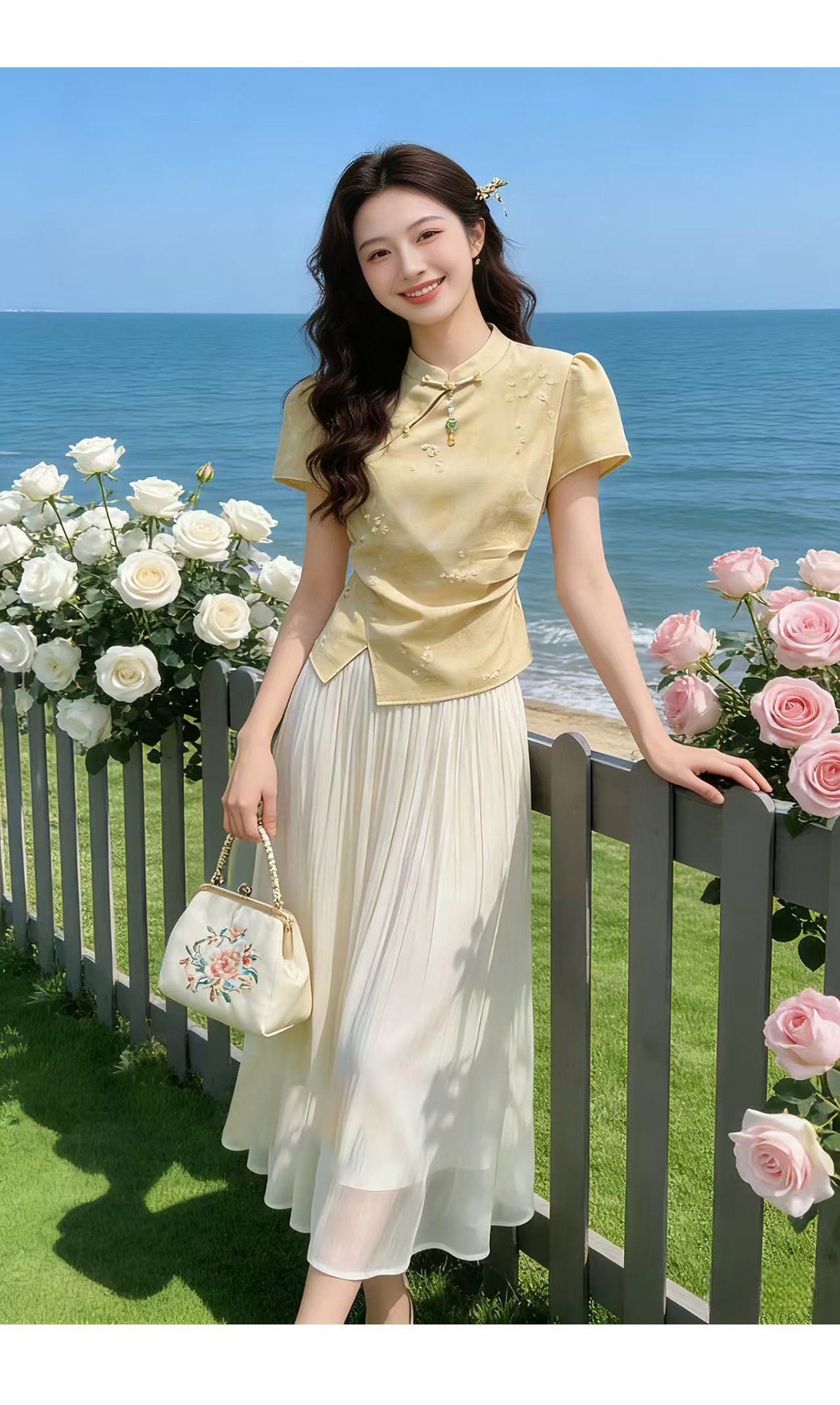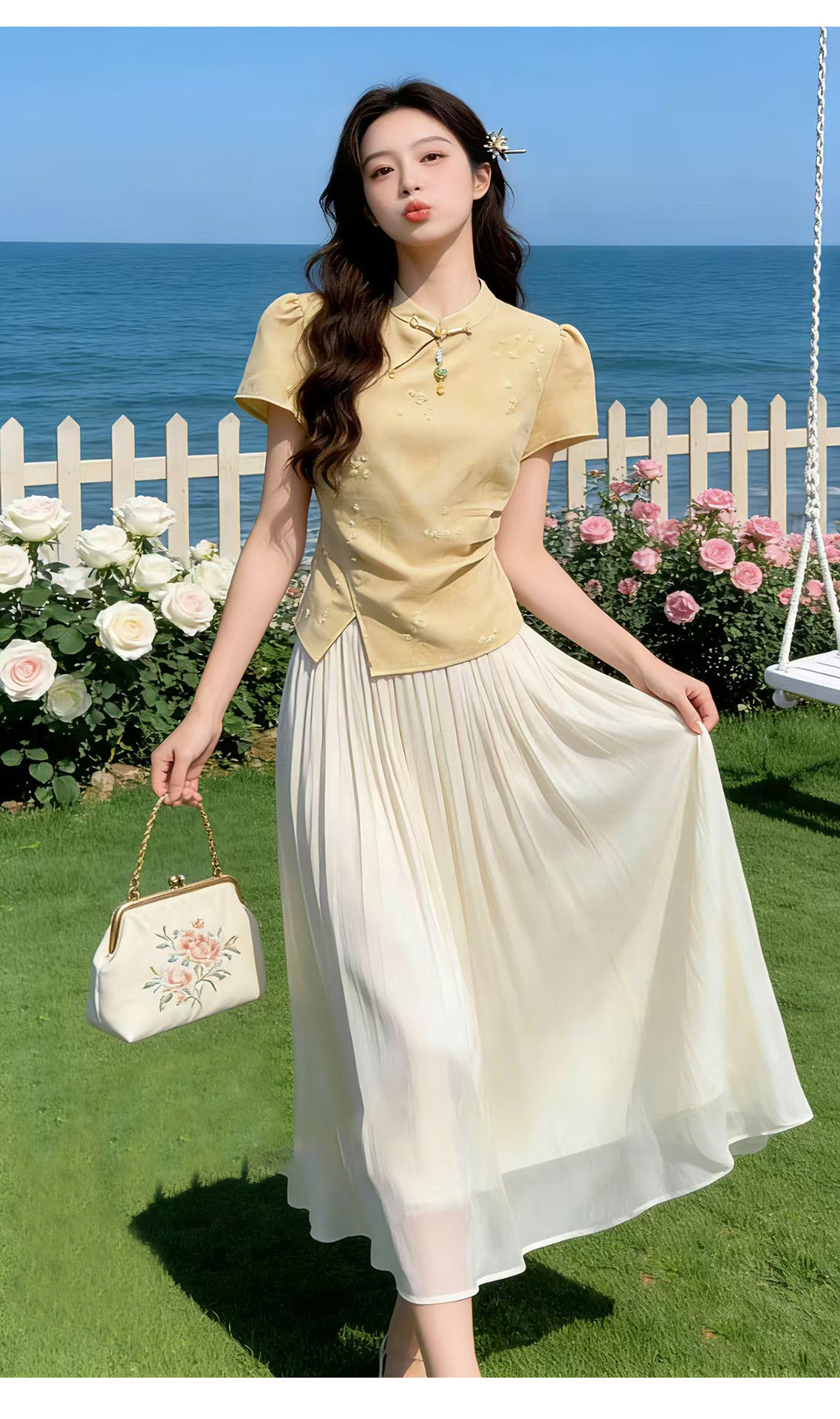 「自」全新升级【铂金会员275/天猫369/差价94】(99800)洛诗琳2026新中式国风绣花上衣+高腰气质中长半身裙两件套