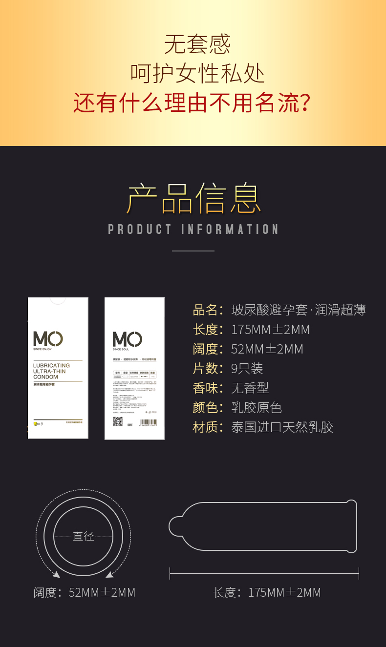 名流 MO玻尿酸水溶性润滑超薄避孕套