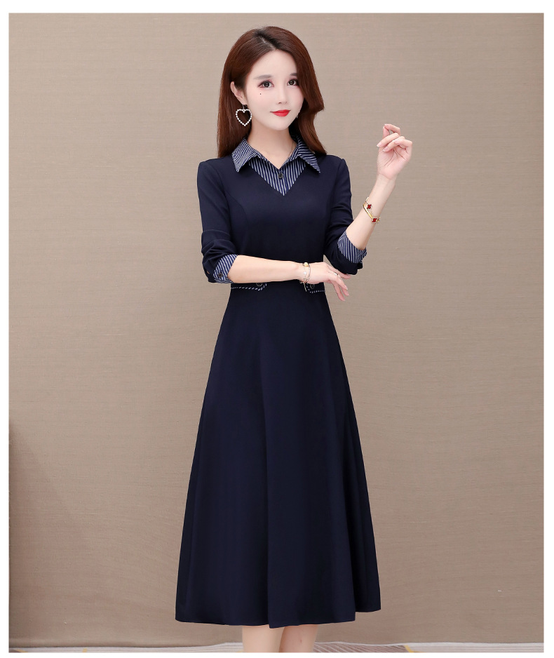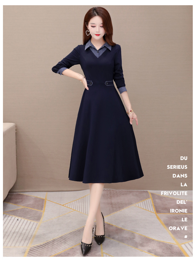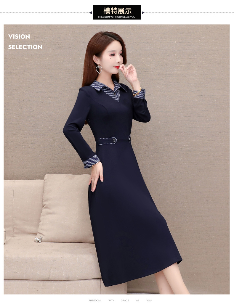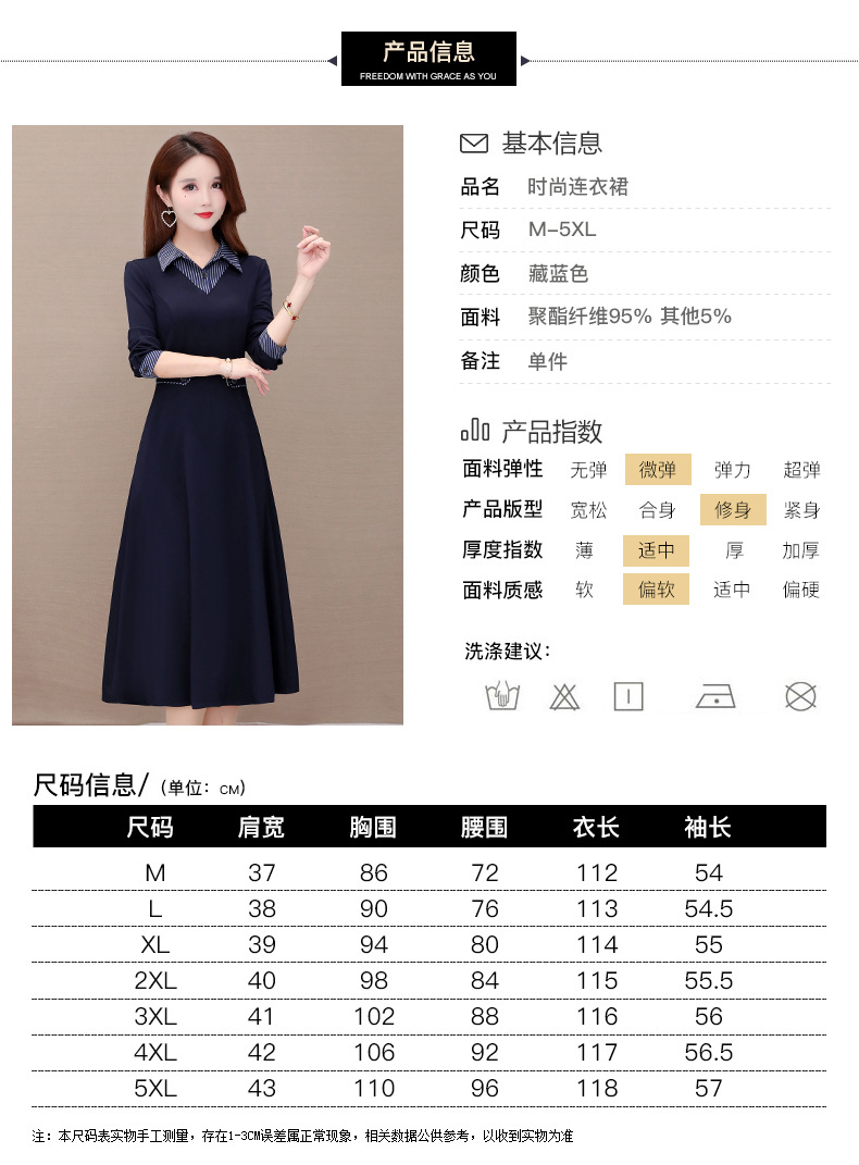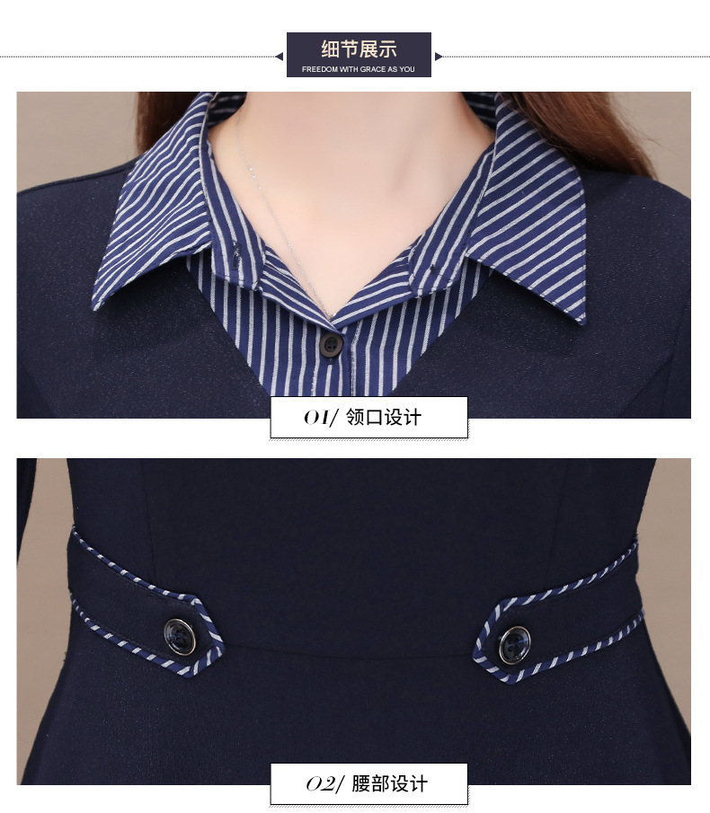 YWE-KED91317衬衣领条纹连衣裙女2020秋新款修身气质减龄长袖中长款过膝a字裙