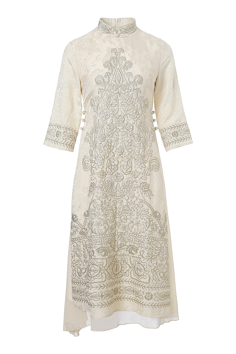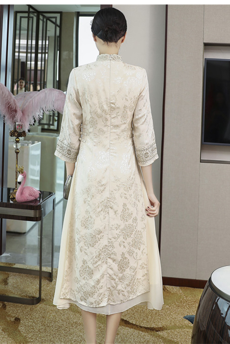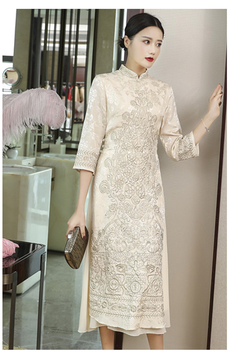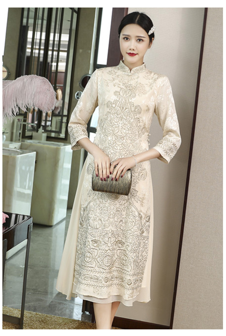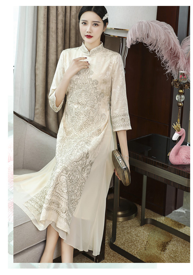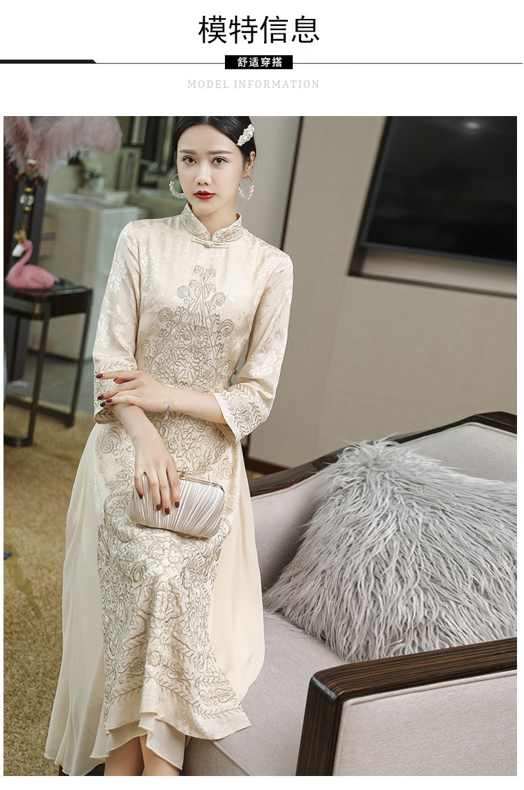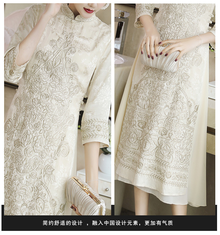 YFN-19522民族风改良旗袍气质优雅中长款复古晚宴礼服连衣裙