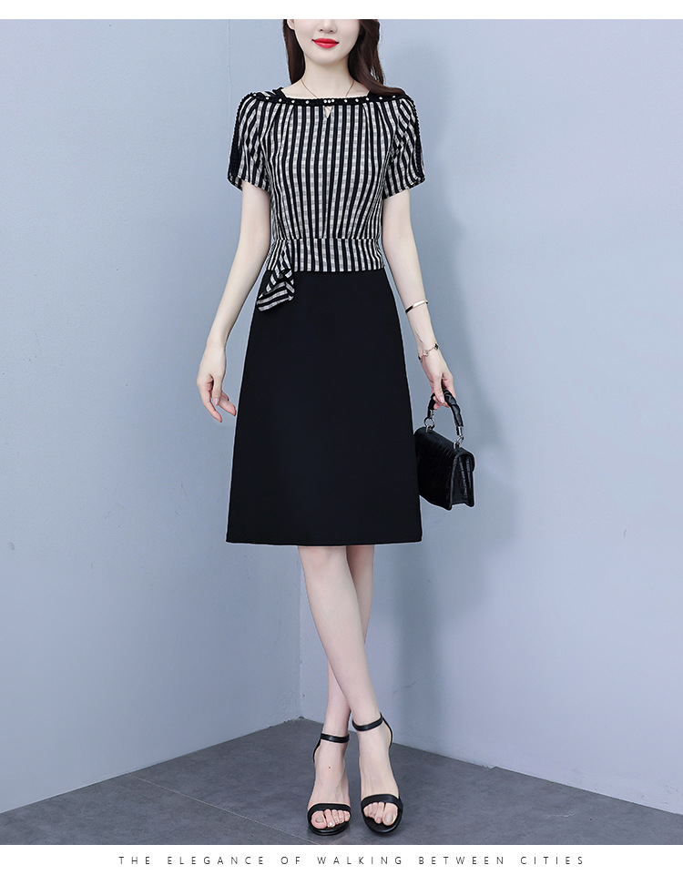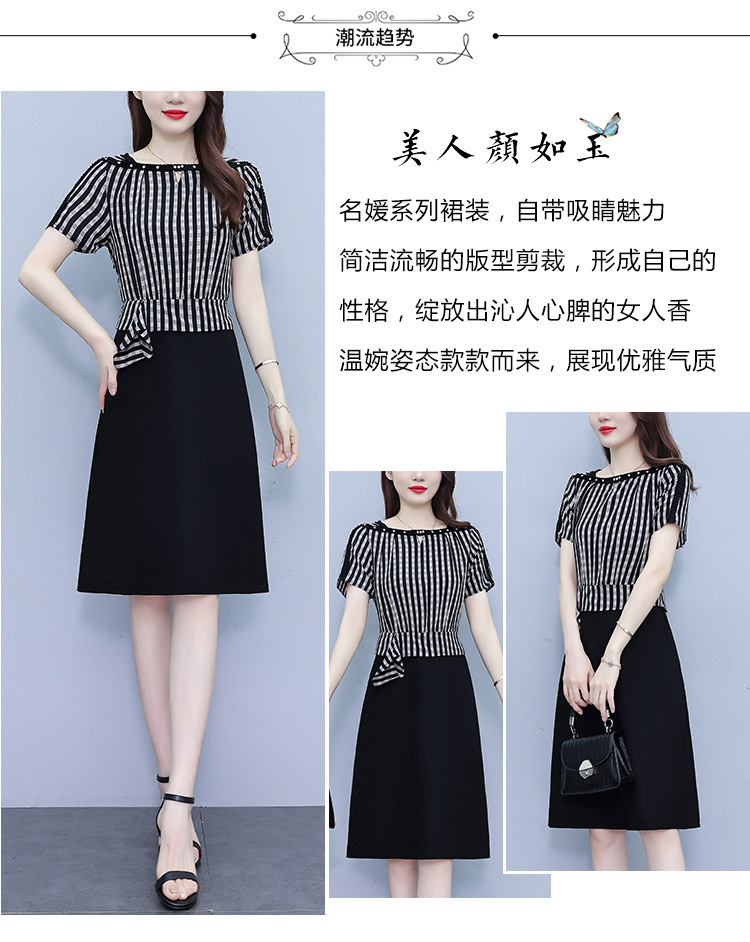 雀说条纹拼接连衣裙女新款时尚洋气韩版假两件简约显瘦中长裙AL8535