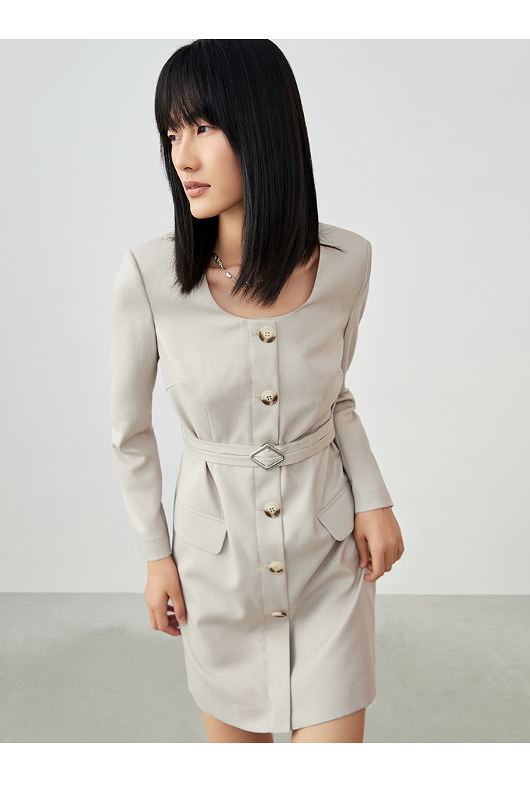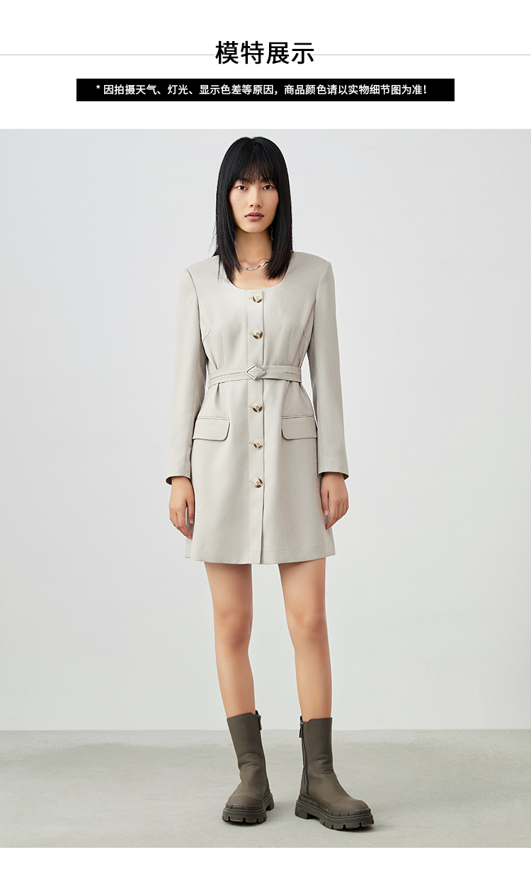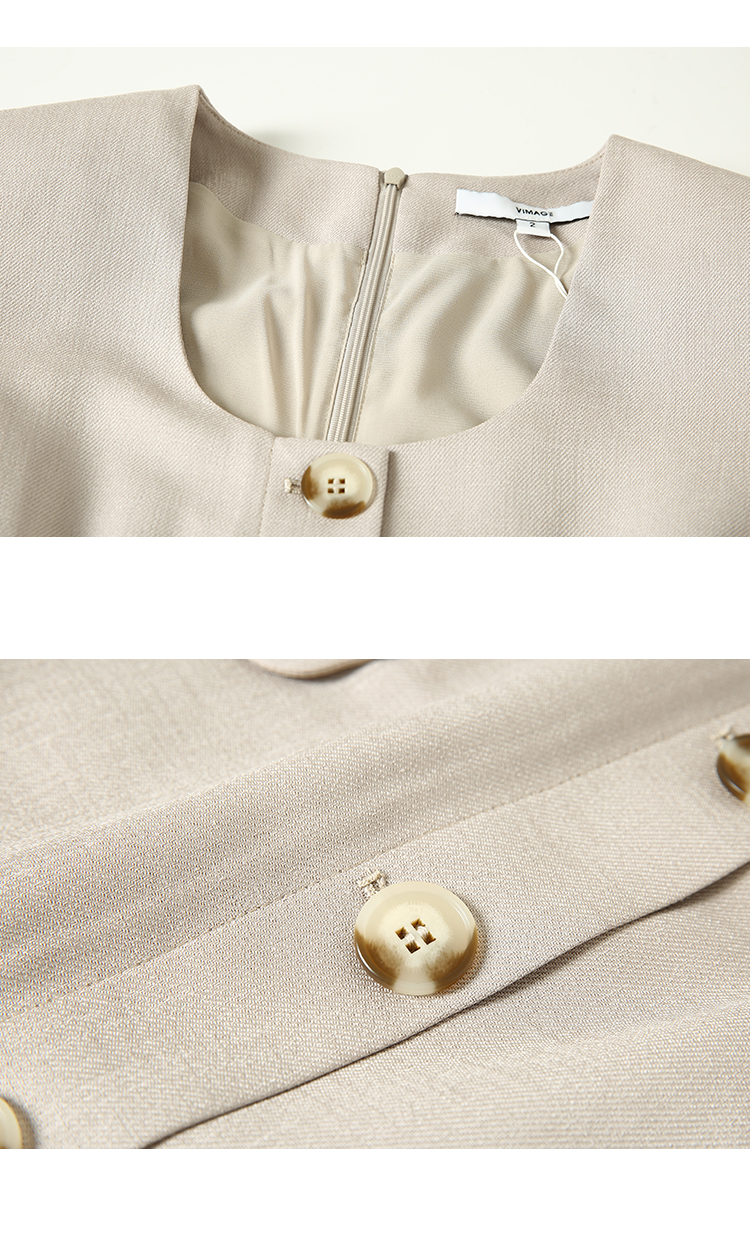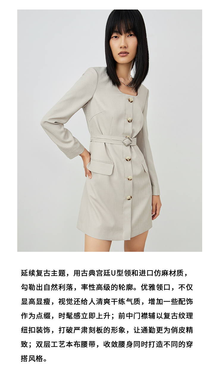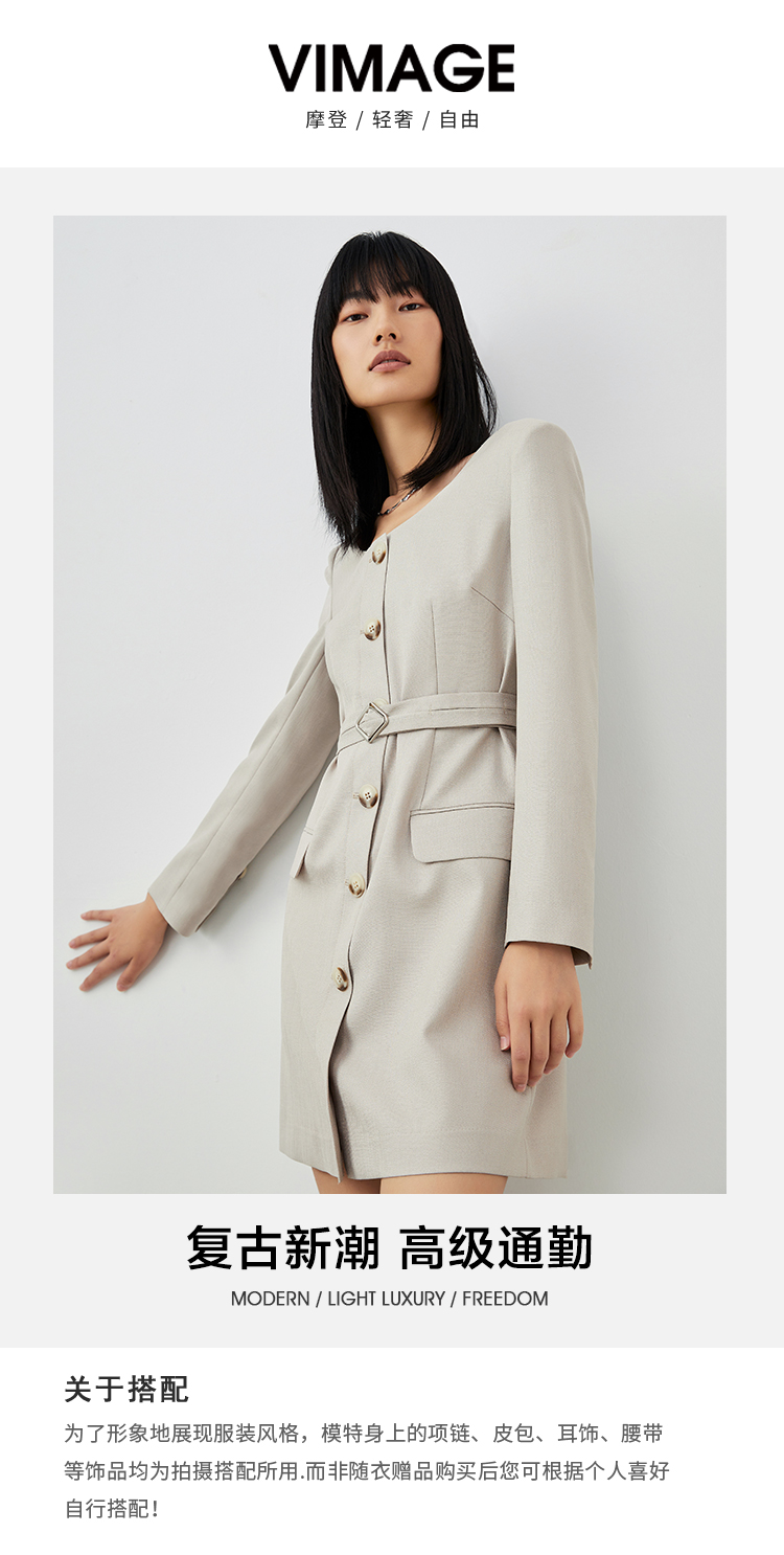 VIMAGE纬漫纪春款新品时尚通勤复古干练收腰连衣裙V1707307