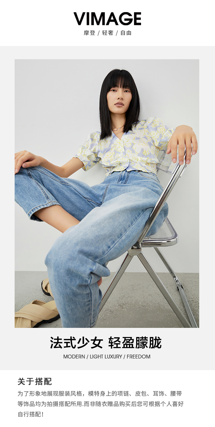 VIMAGE纬漫纪通勤职业显瘦直筒长裤女裤VA2105103