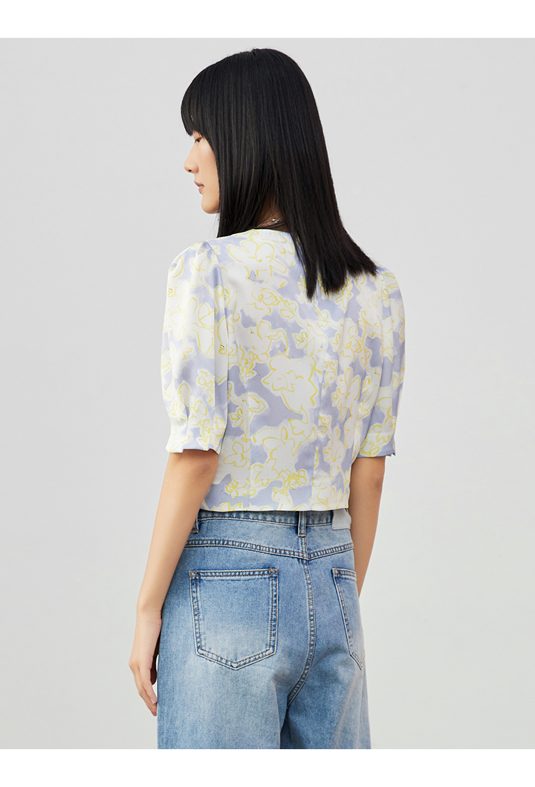 EITIE爱特爱女装夏季五分喇叭袖黑白撞色短款修身连衣裙5307068