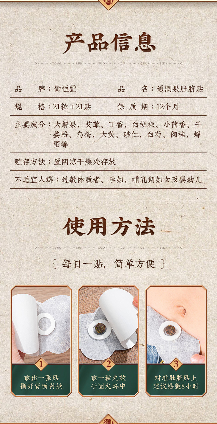 【买3送2】御恒堂通润果肚脐贴甄选缅甸优质大解果多重植物萃取每天来一帖轻松好“方便”