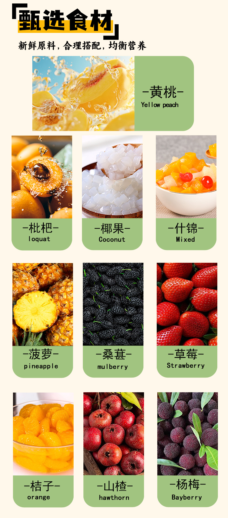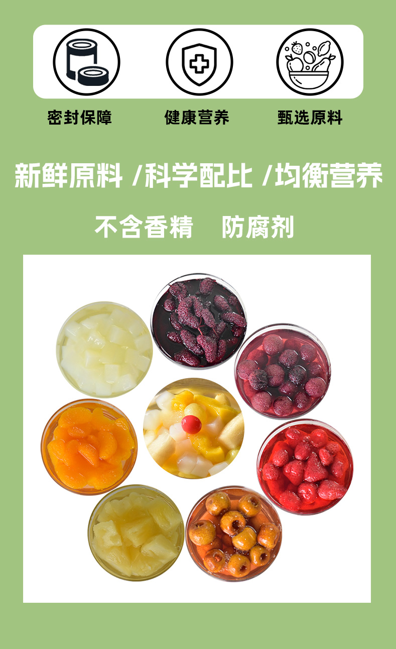 【清爽可口 果香扑鼻】桔子黄桃菠萝杨梅枇杷桑葚椰果山楂草莓什锦水果罐头