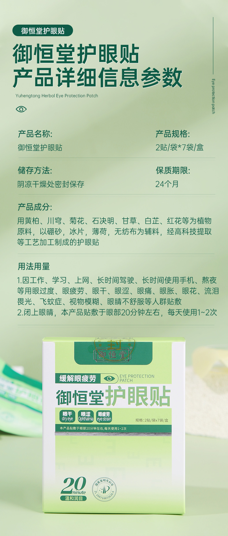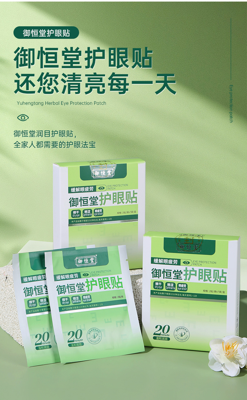 【买3送2 买5送4】御恒堂护眼贴 眼科团队研发 专利护眼 草本植萃0添加 7对/盒