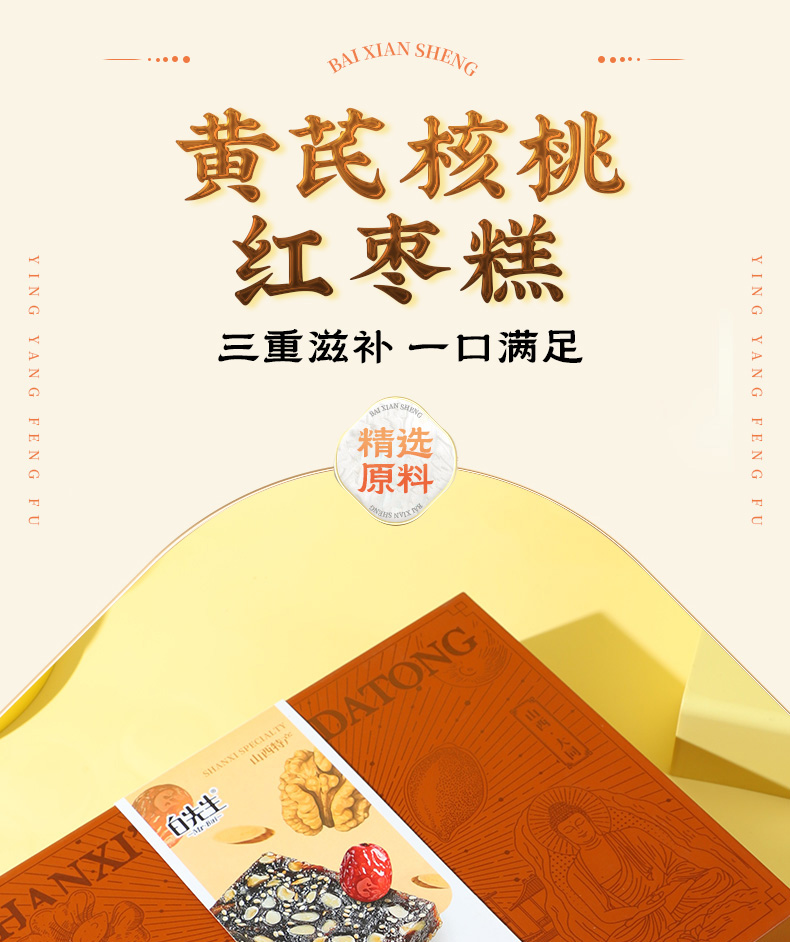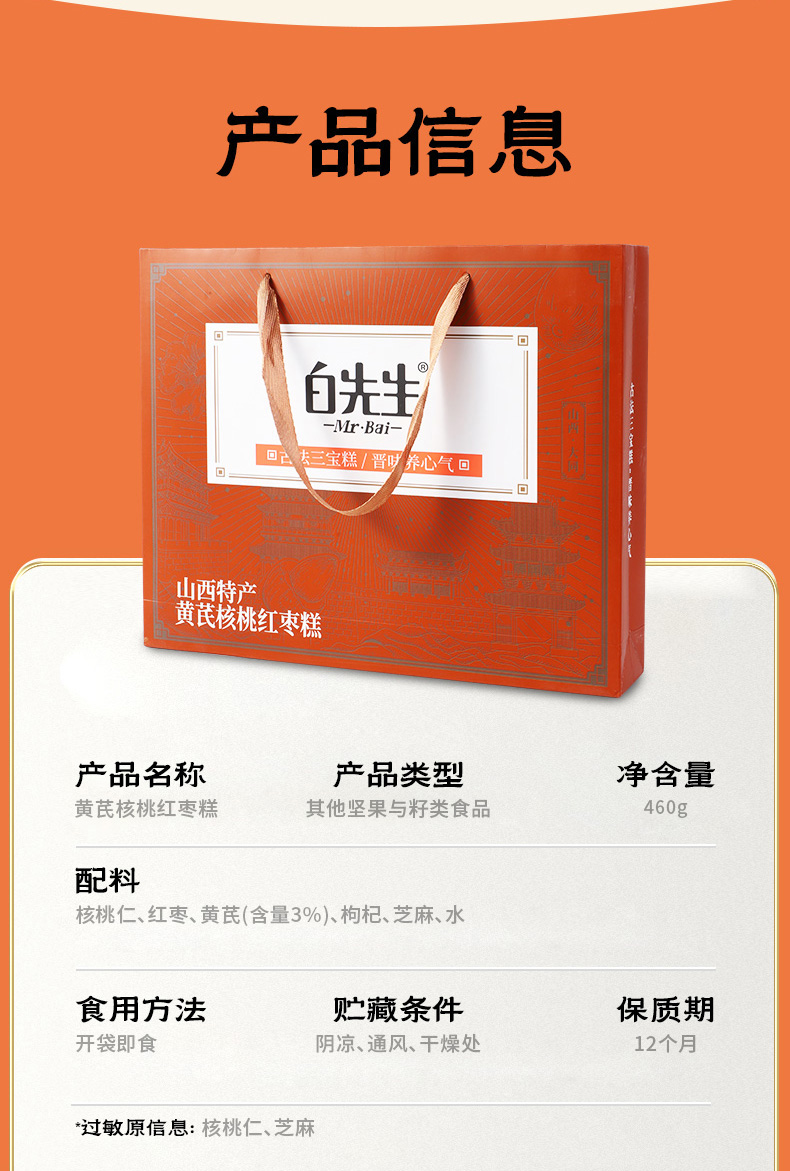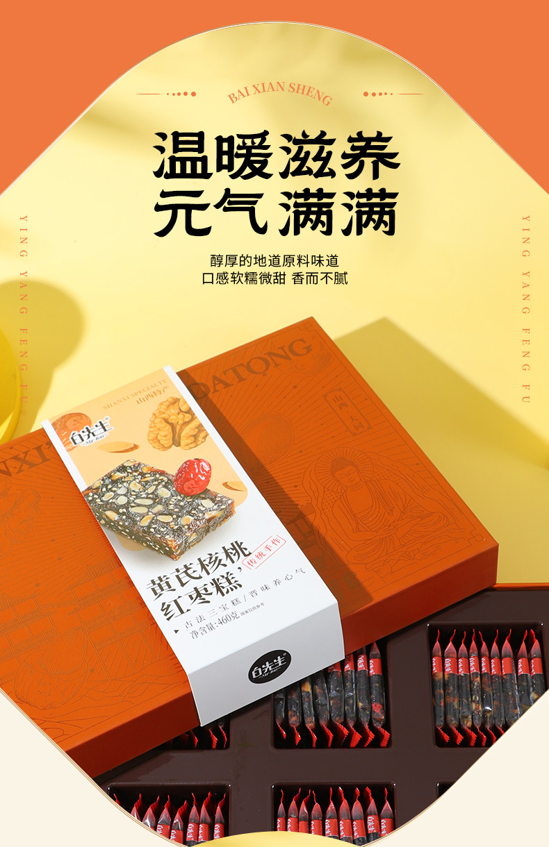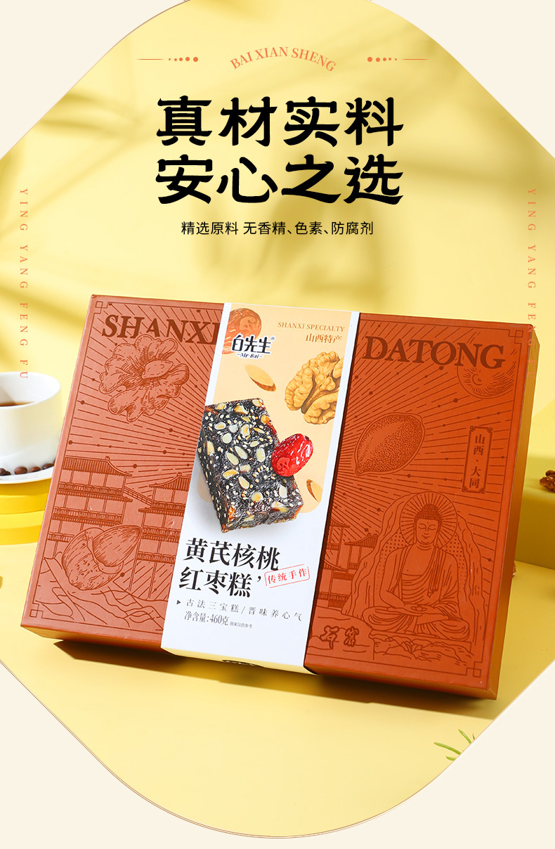 【古法三宝糕】黄芪核桃红枣糕460g礼盒装白先生 传统手作山西大同特产伴手礼