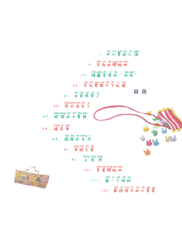 贝加被爸爸妈妈送进了住宿的开心果幼儿园,成为了樱桃班的一员。他与同学珠珠、铛铛以及其他小朋友和白老师一起生活在这个小小的天地里。在这里,他们从一开始的陌生,到亲如一家。他们一起做小兔子操,一起观察小青蛙,一起枕着爸爸妈妈的照片睡觉,一起去天台看月亮和星星……他们虽然离开了爸爸妈妈,但在樱桃班里,他们享受彼此的关爱,享受着属于他们的纯真快乐!著名儿童文学作家郑春华倾注了自己对孩童的爱,描绘了这群樱桃班里让人忍不住喜爱的孩子。