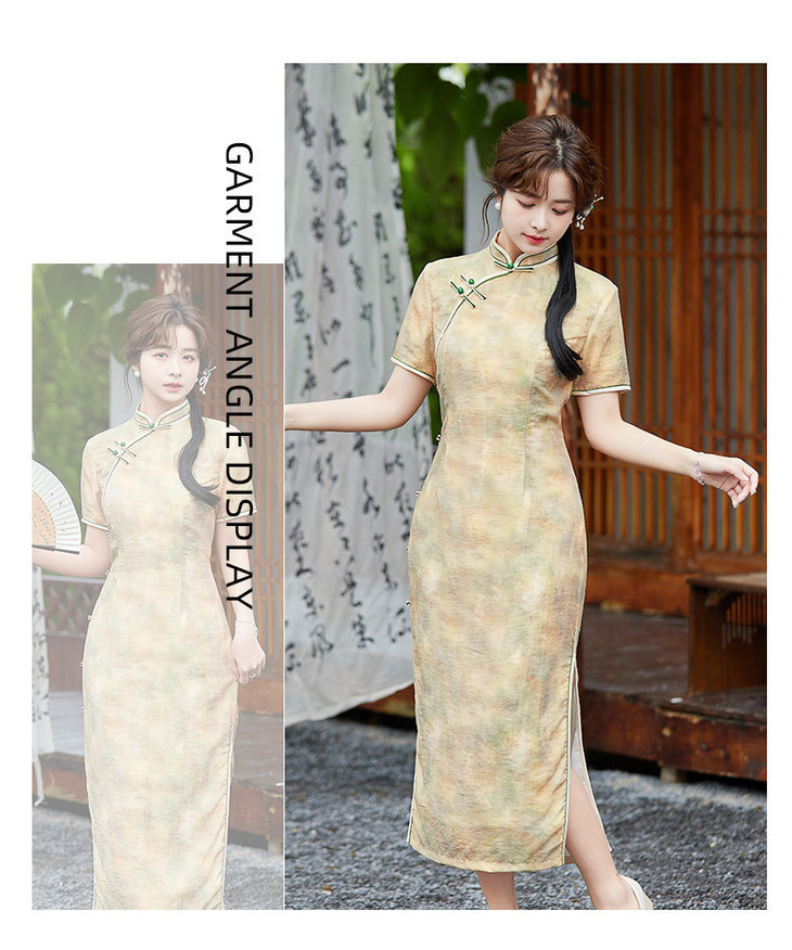 SYG2024年新款旗袍三分袖女春秋款复古修身礼服中式妈妈旗袍年轻款