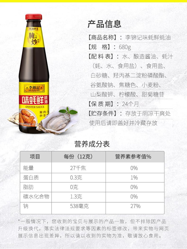 李锦记味蚝鲜蚝油/1份(680g*2瓶)生产日期:25年12月