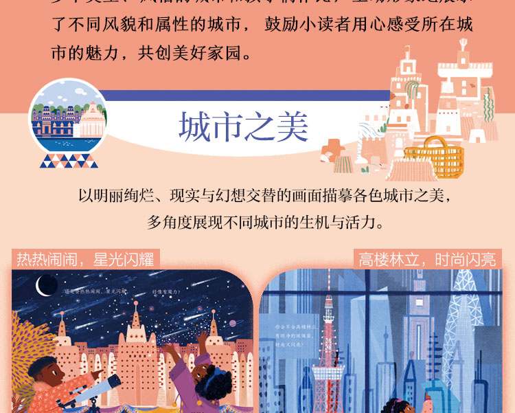 形象地向小读者展示了不同风貌和属性的城市,或安静,或喧嚣,或梦幻,或明亮……