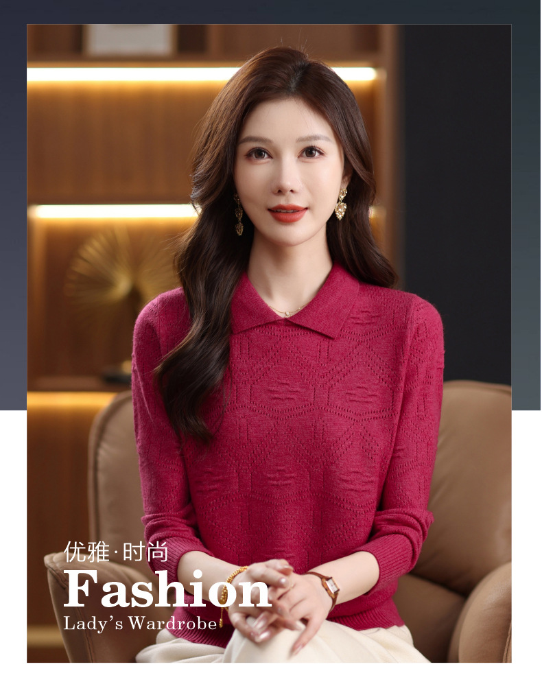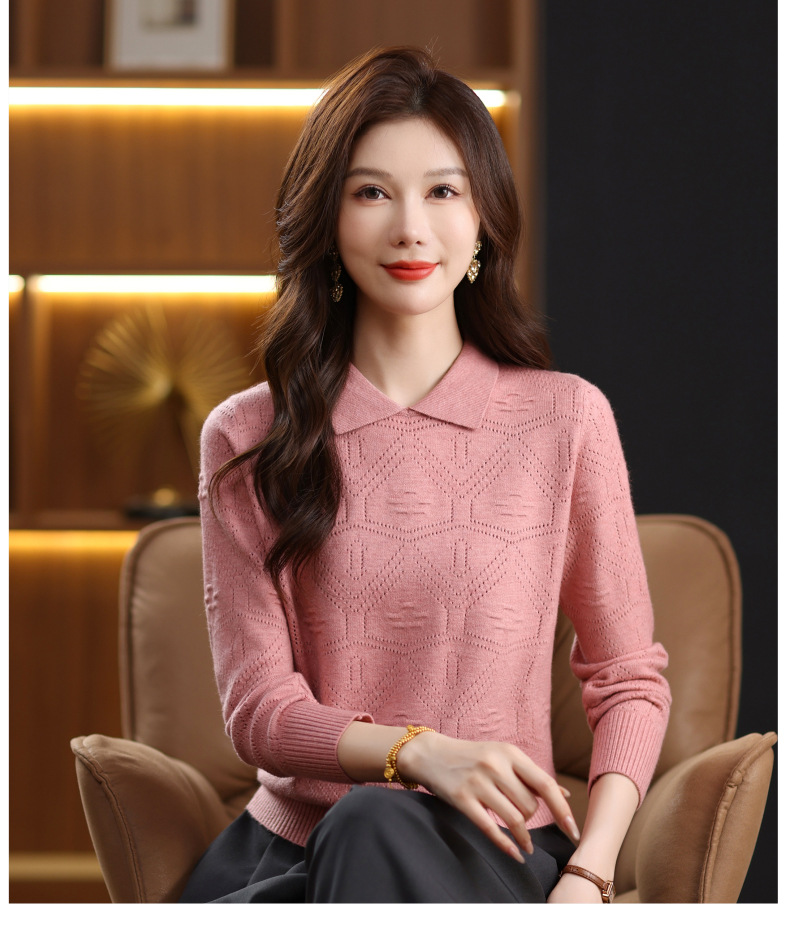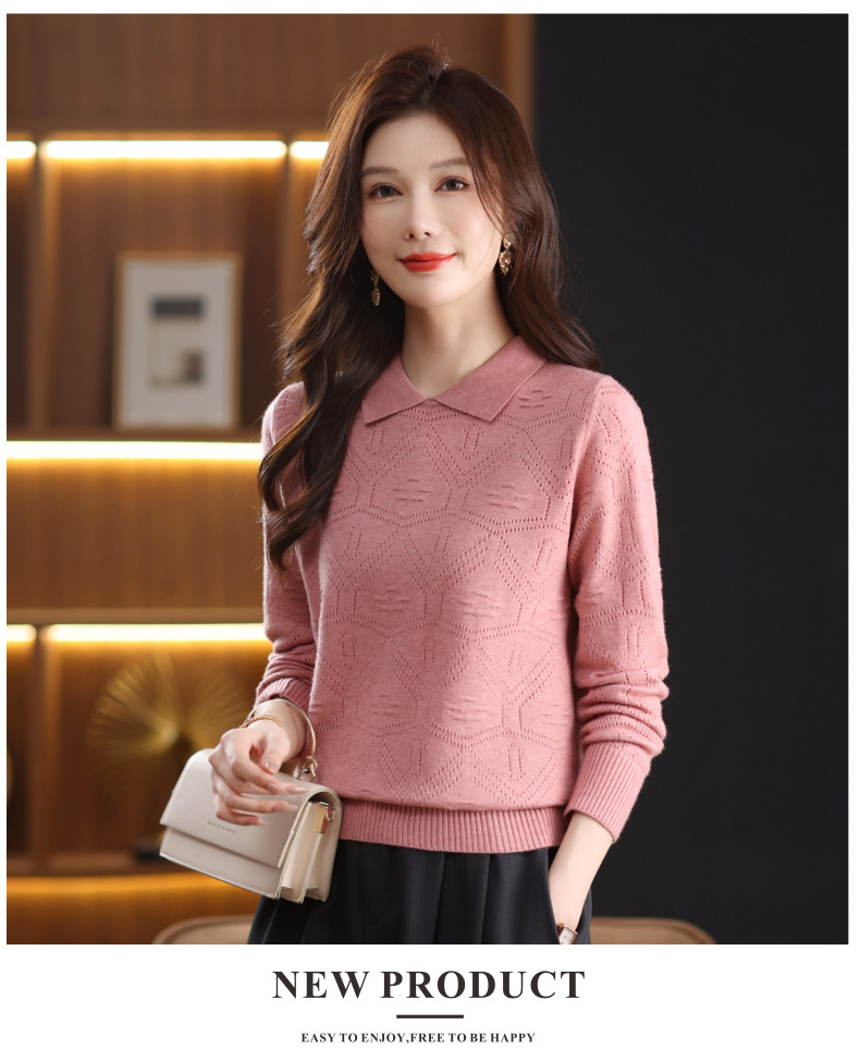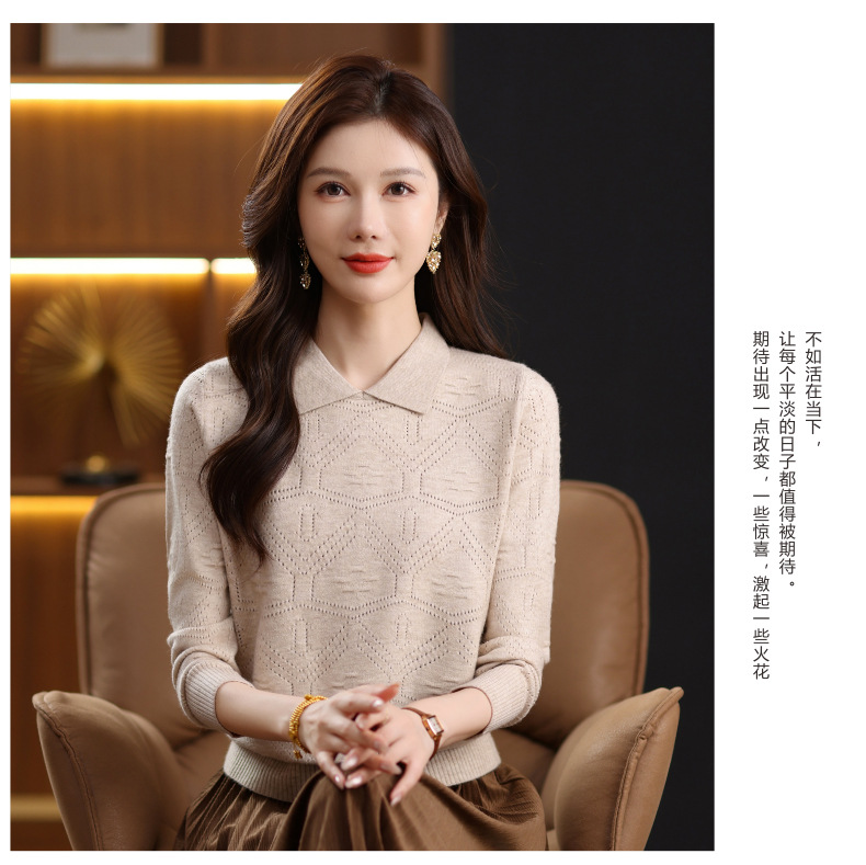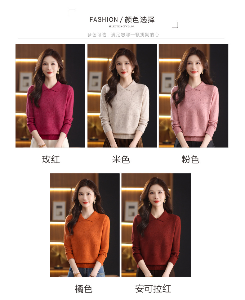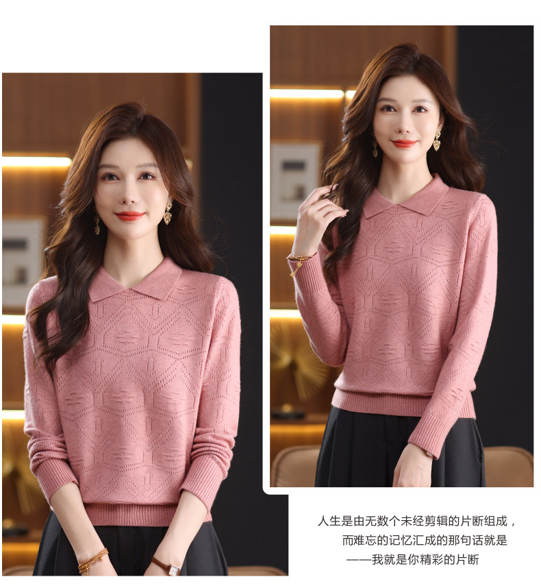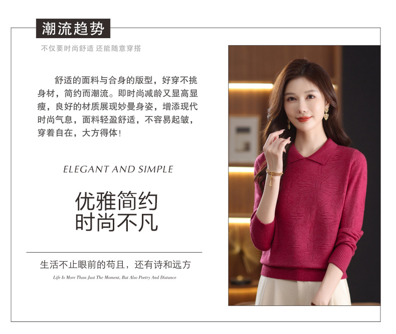CC春秋季新款毛衣女气质优雅polo领针织衫几何纹理修身上衣