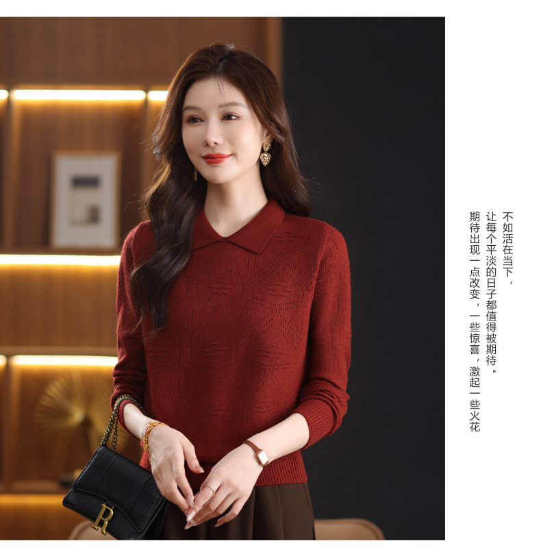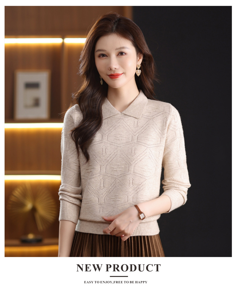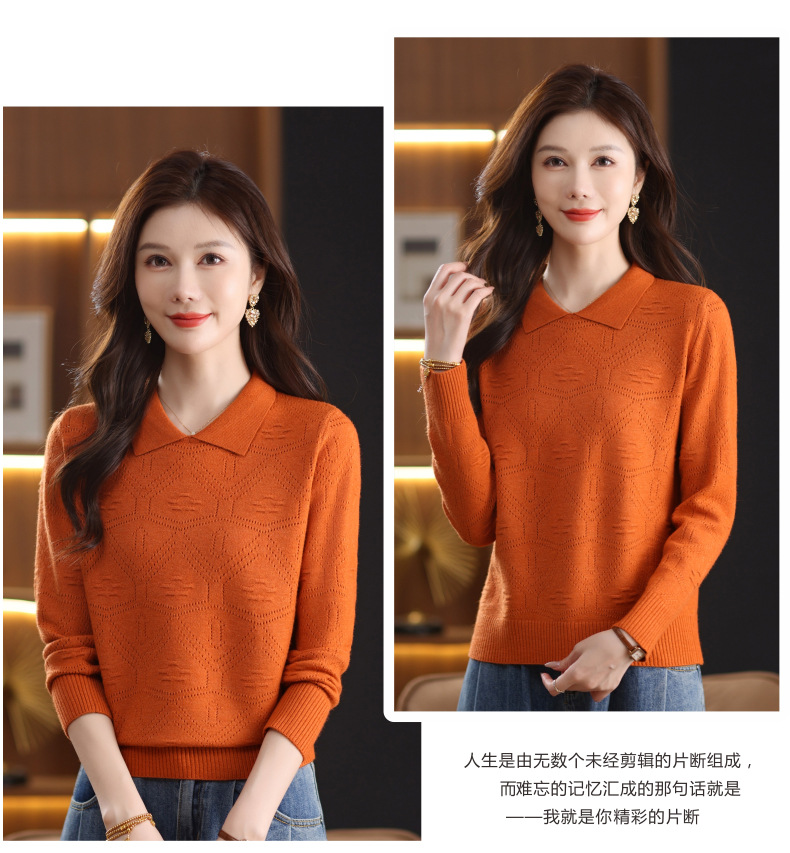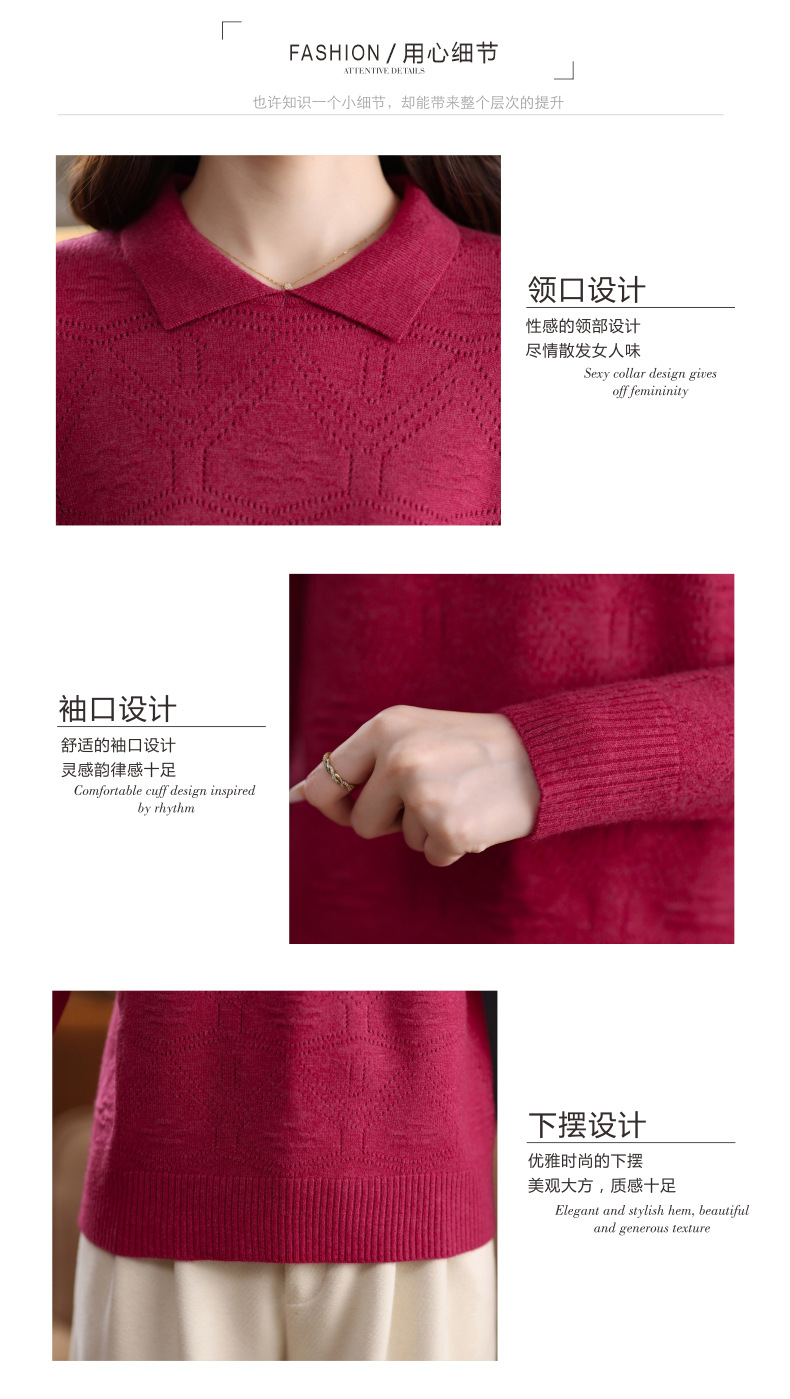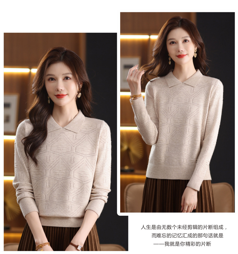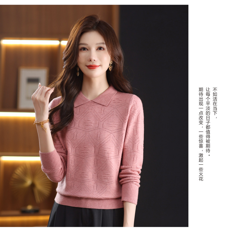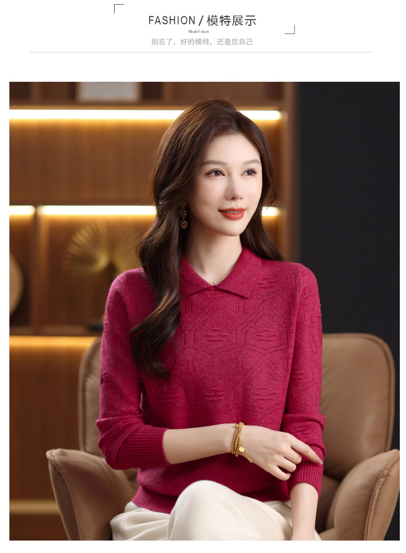 CC春秋季新款毛衣女气质优雅polo领针织衫几何纹理修身上衣