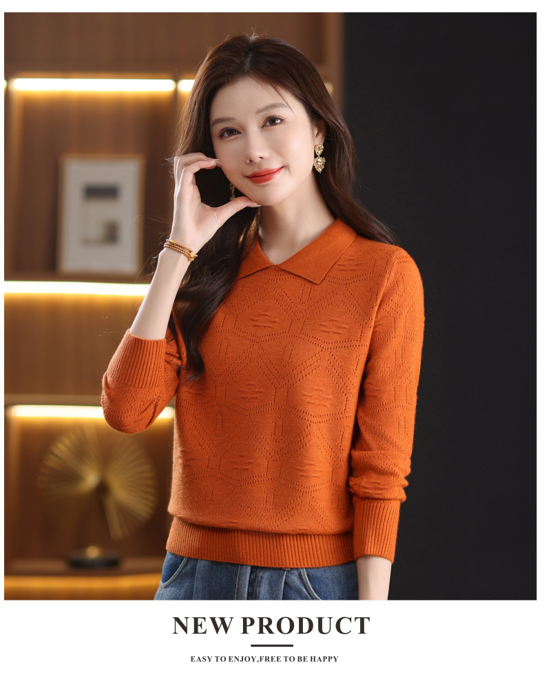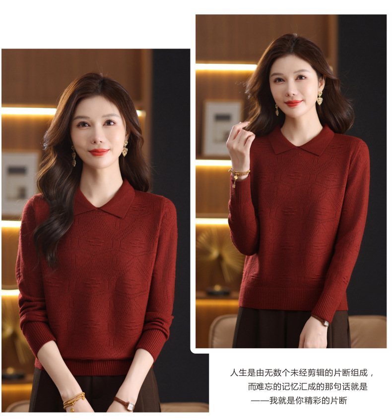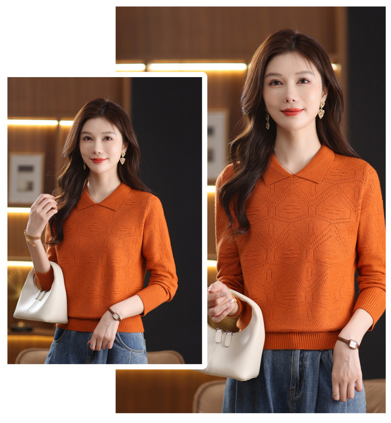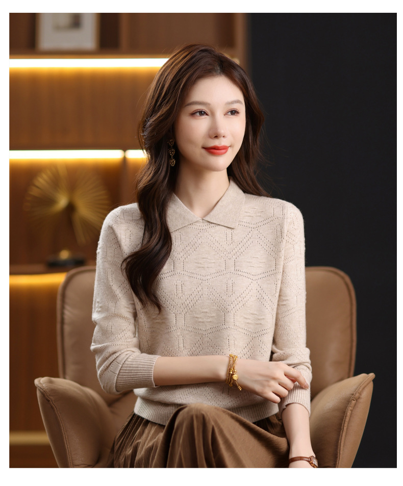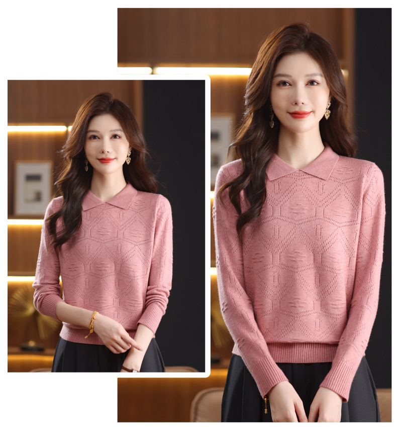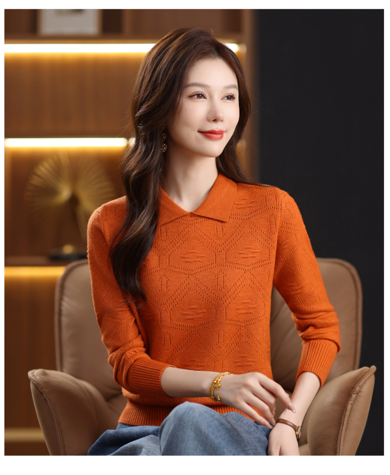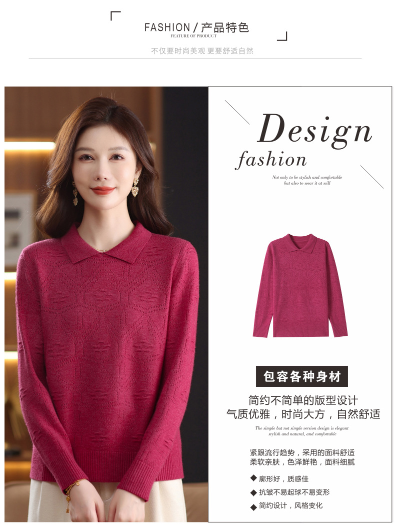 CC春秋季新款毛衣女气质优雅polo领针织衫几何纹理修身上衣