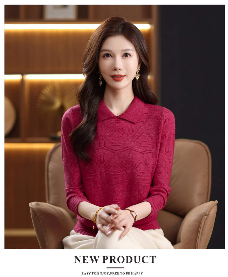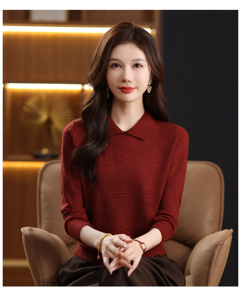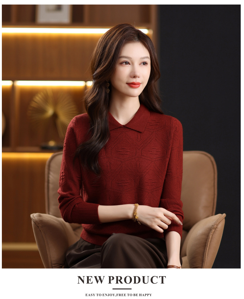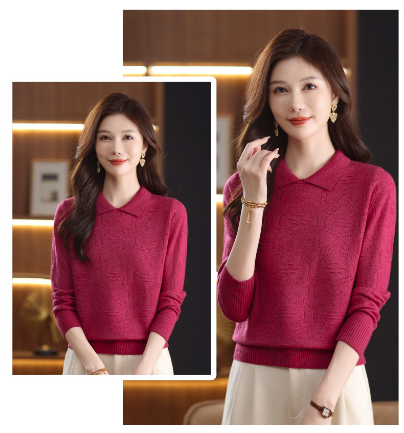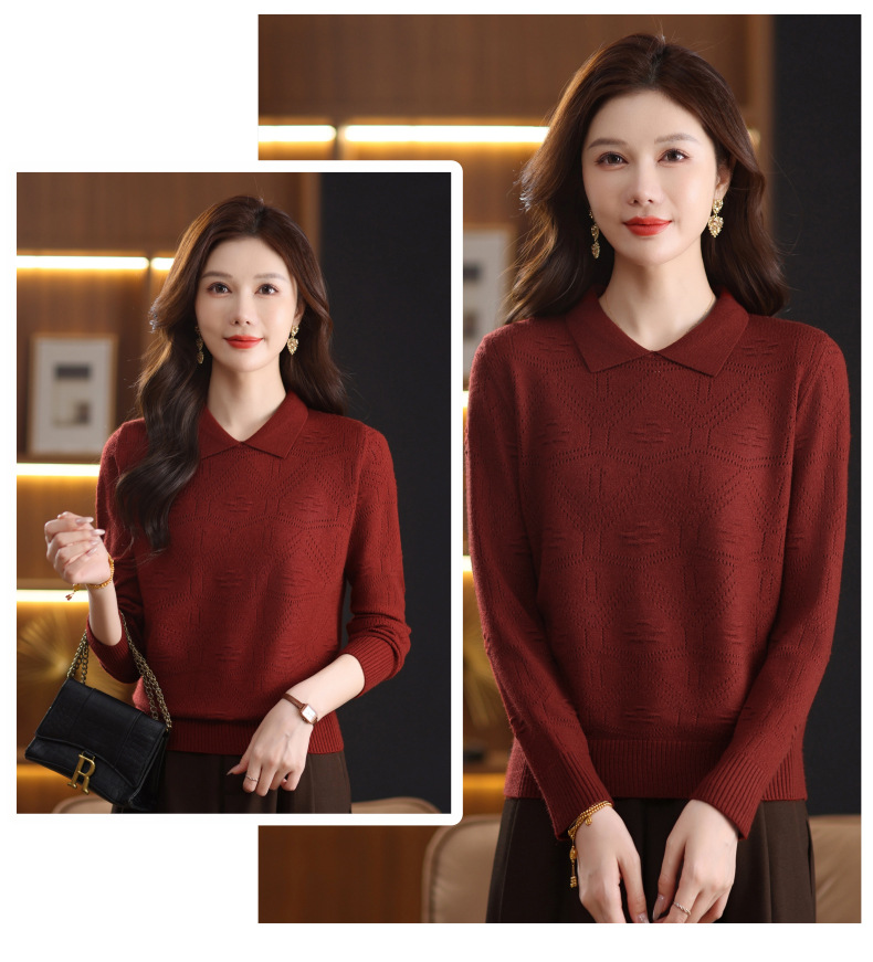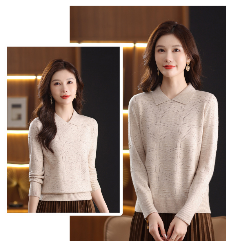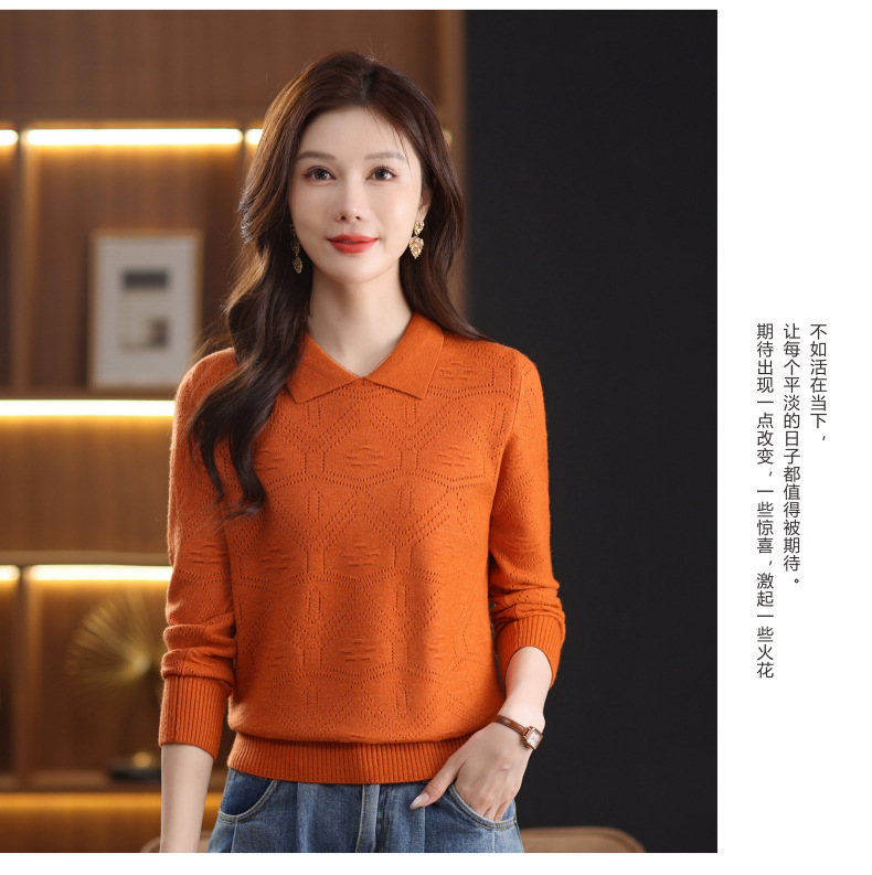 CC春秋季新款毛衣女气质优雅polo领针织衫几何纹理修身上衣