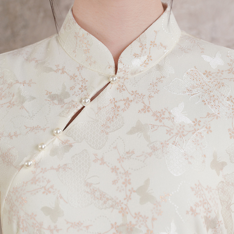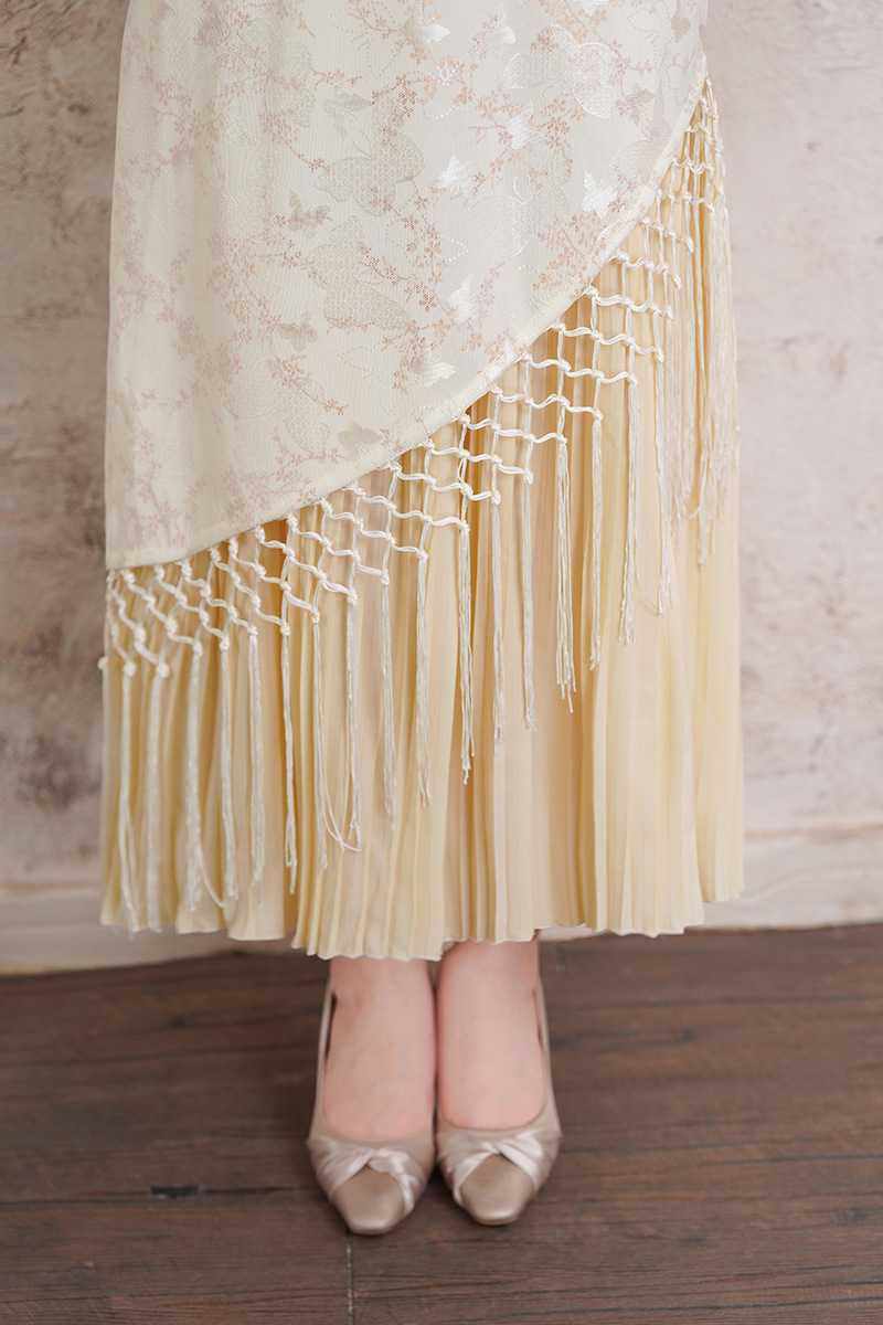 2025年秋季新款改良旗袍大裙摆气质日常米白流苏长款连衣裙女装 商品图4
