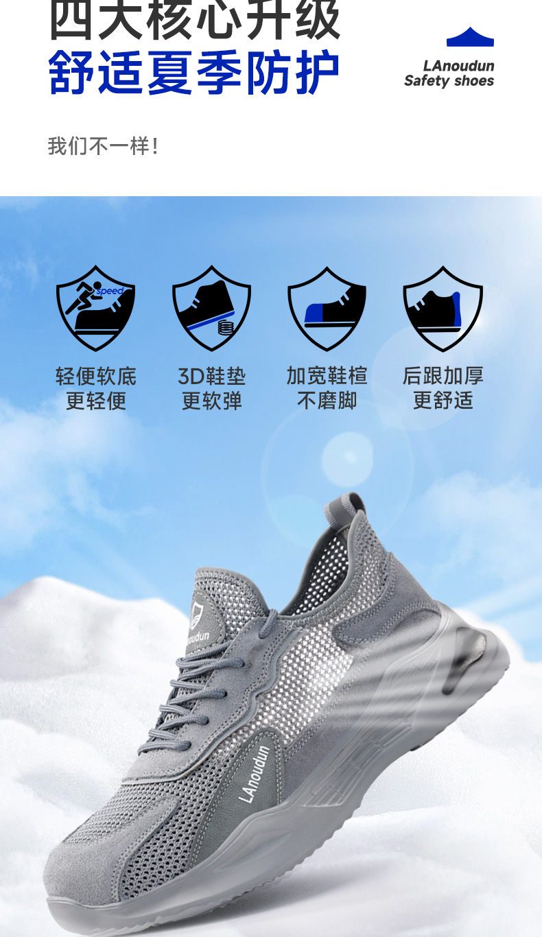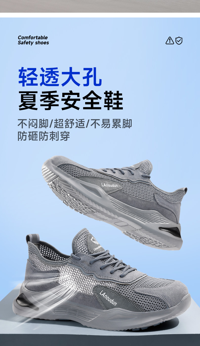 新品夏季蓝鸥盾专业劳保鞋防砸防刺穿钢包头凯夫拉轻软安全鞋