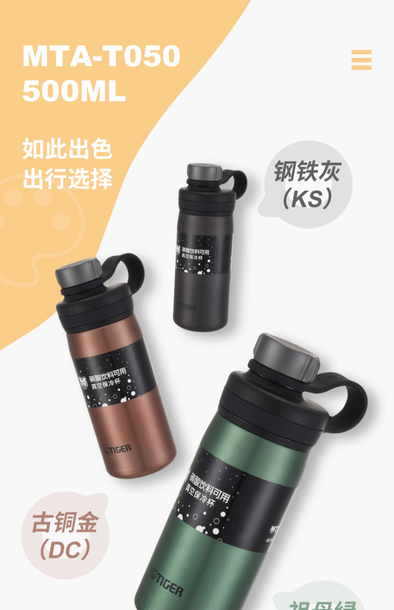 TIGER虎牌运动型真空保温保冷碳酸杯(MTA-T080) 商品图0