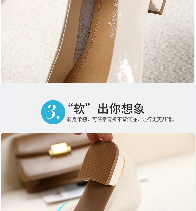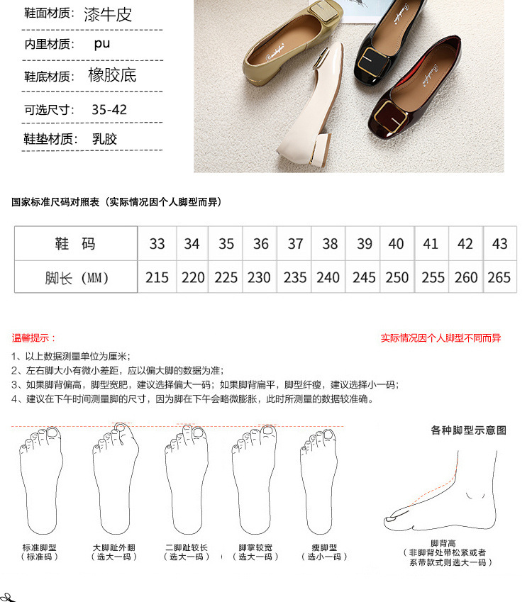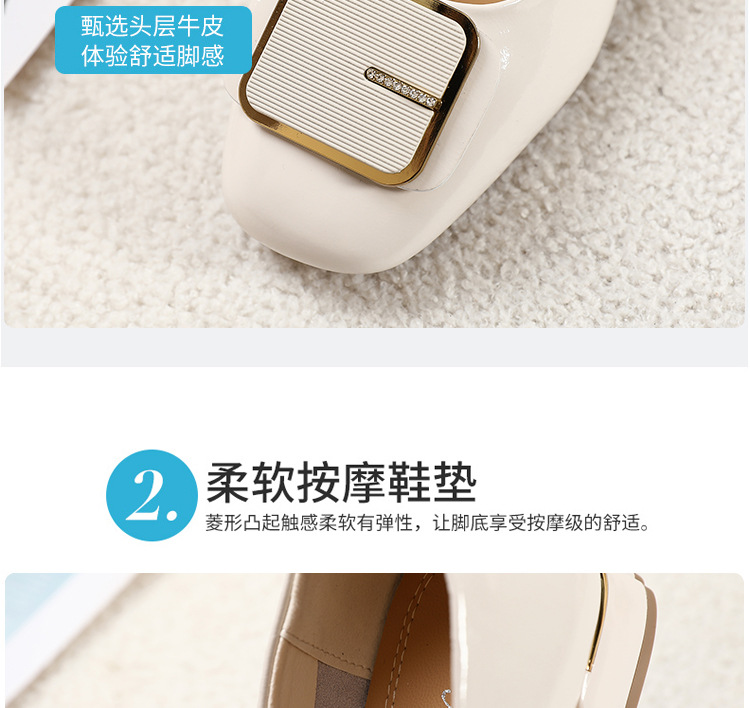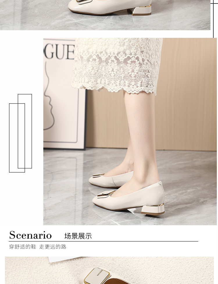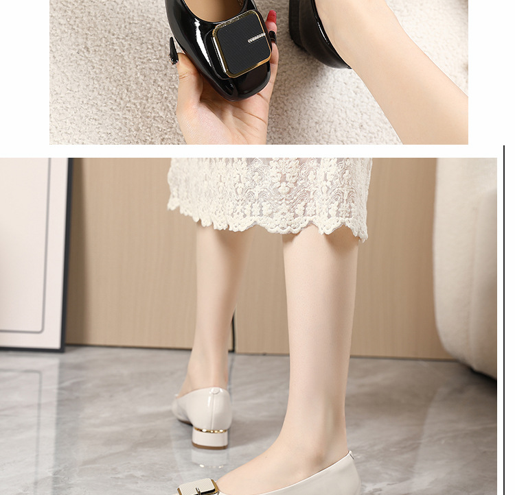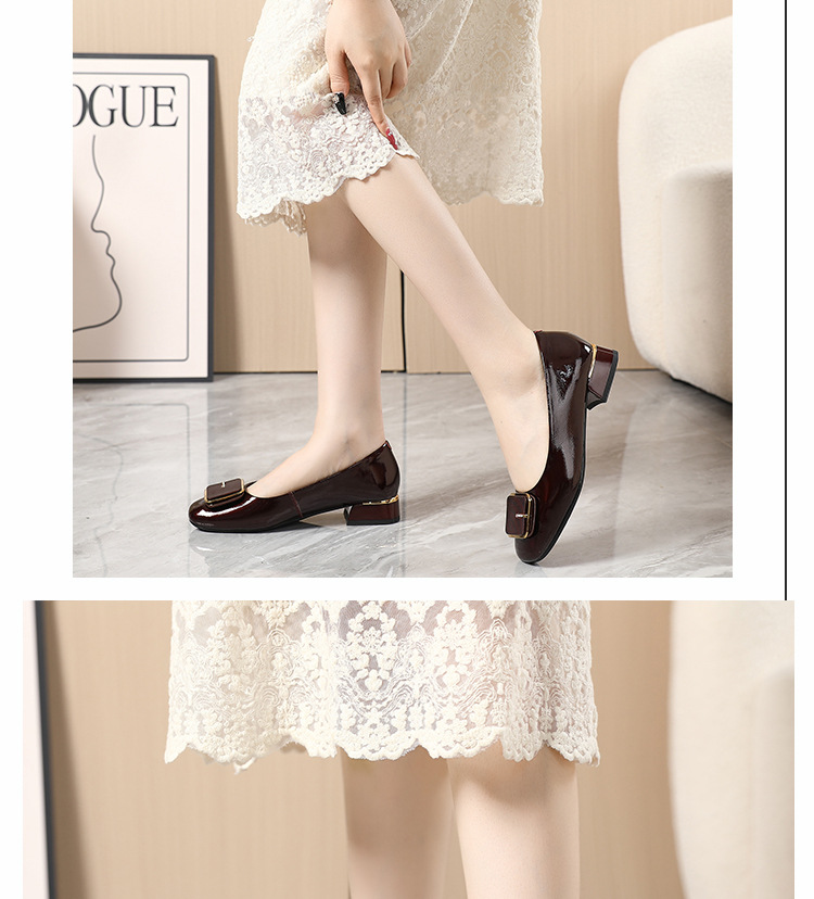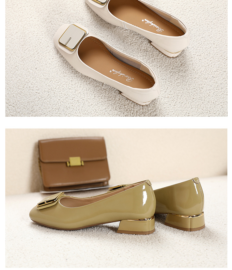 丁摩 漆皮低跟女单鞋圆头浅口女鞋真皮粗跟方扣时尚女跟鞋大码5ZF-811