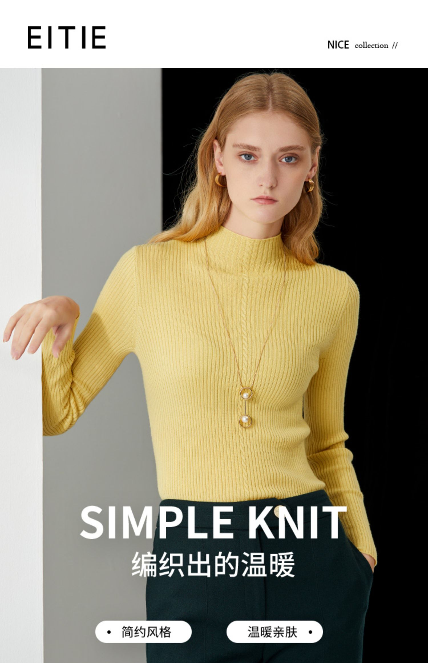 EITIE爱特爱秋季新款高领修身百搭显瘦纯羊毛针织衫女套头C2101806