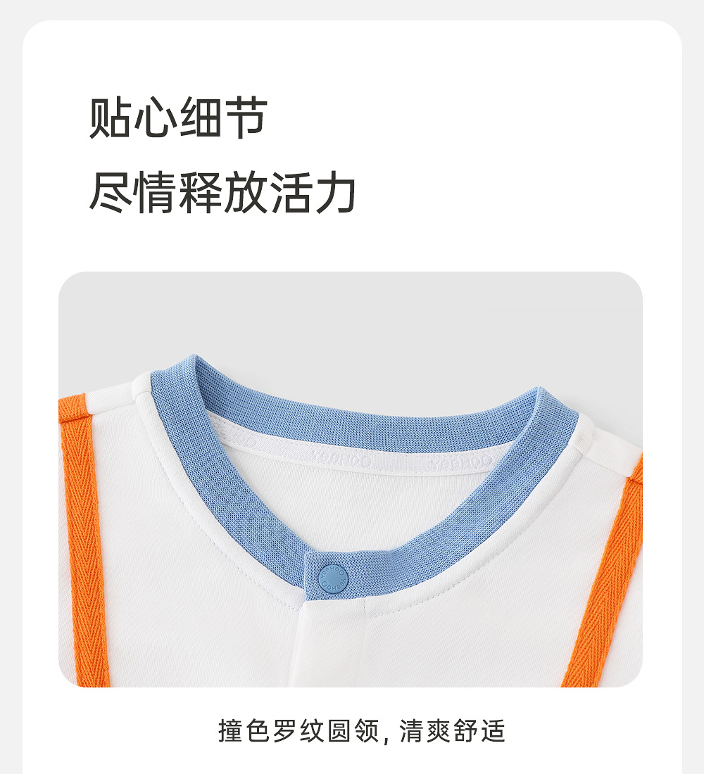 【商场同款】英氏婴儿衣服夏季短袖男童透气纯棉假两件连身衣爬服