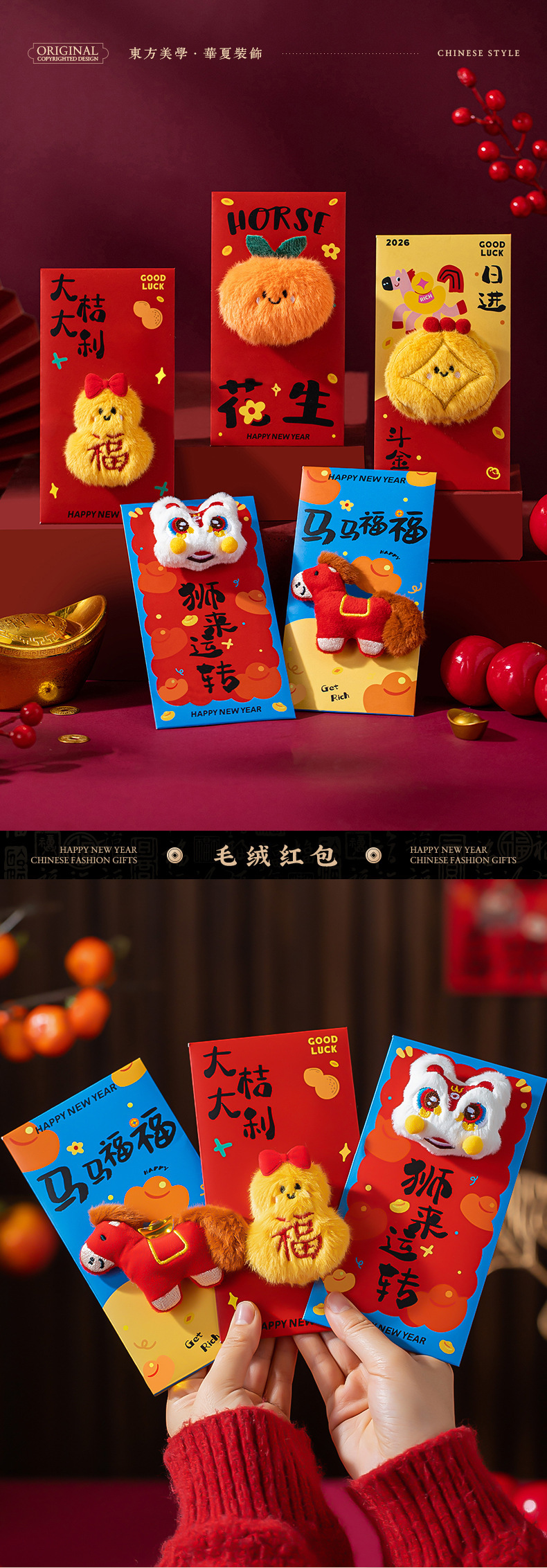 【马到成功好彩头! 过年刚需好物 提前备不慌】马年抱枕+5个毛茸茸新年红包
