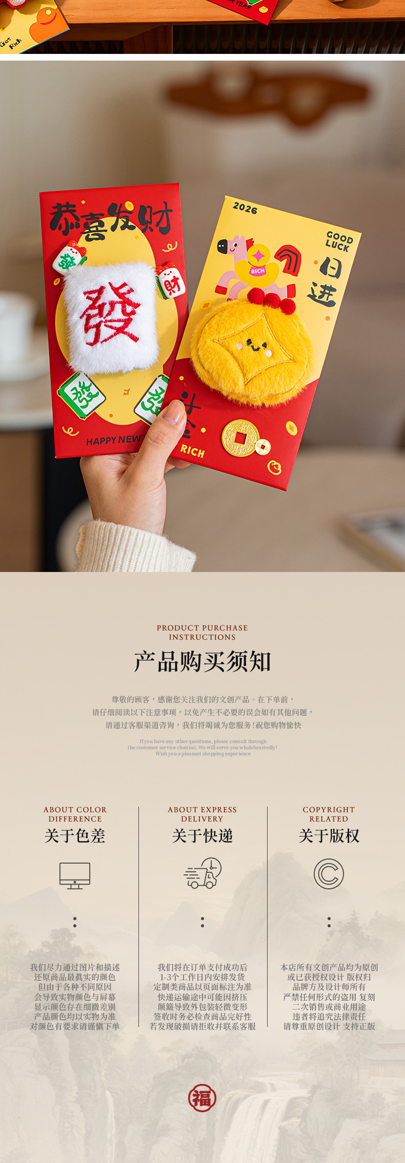 【红包售后说明】不支持7天无理由退换,质量问题拍照给客服售后