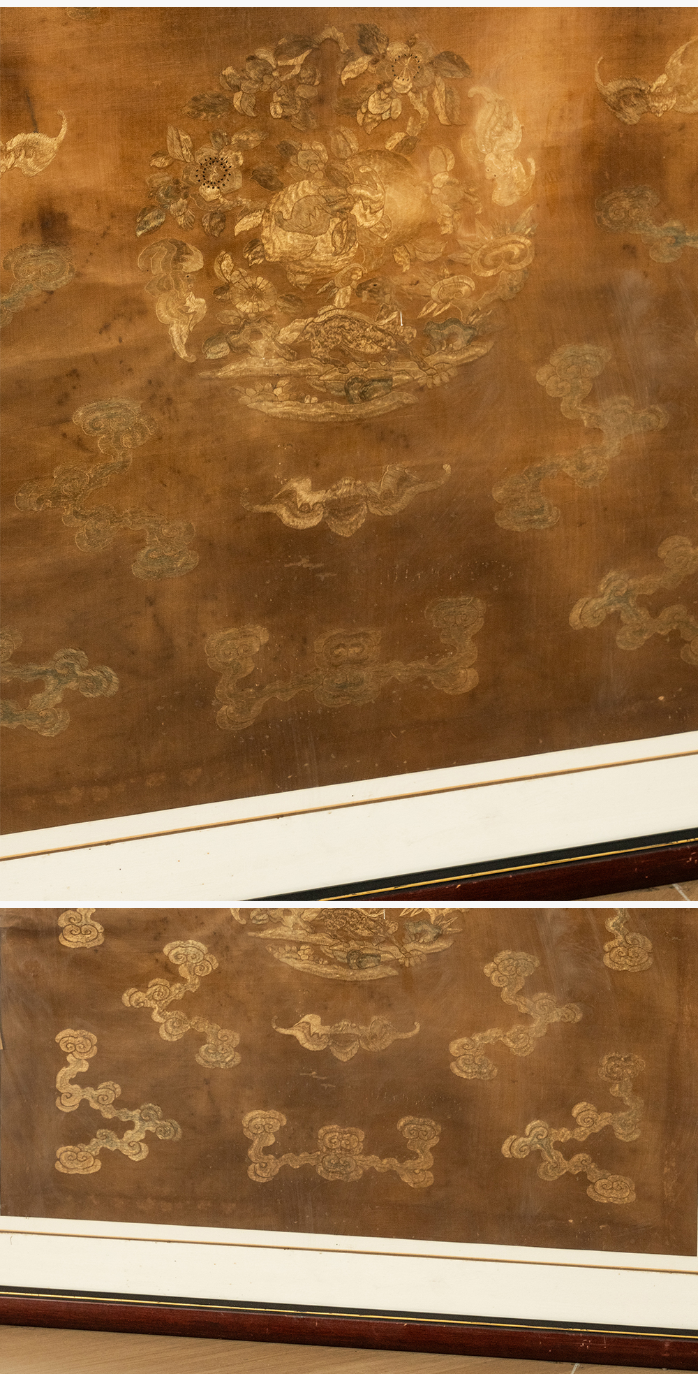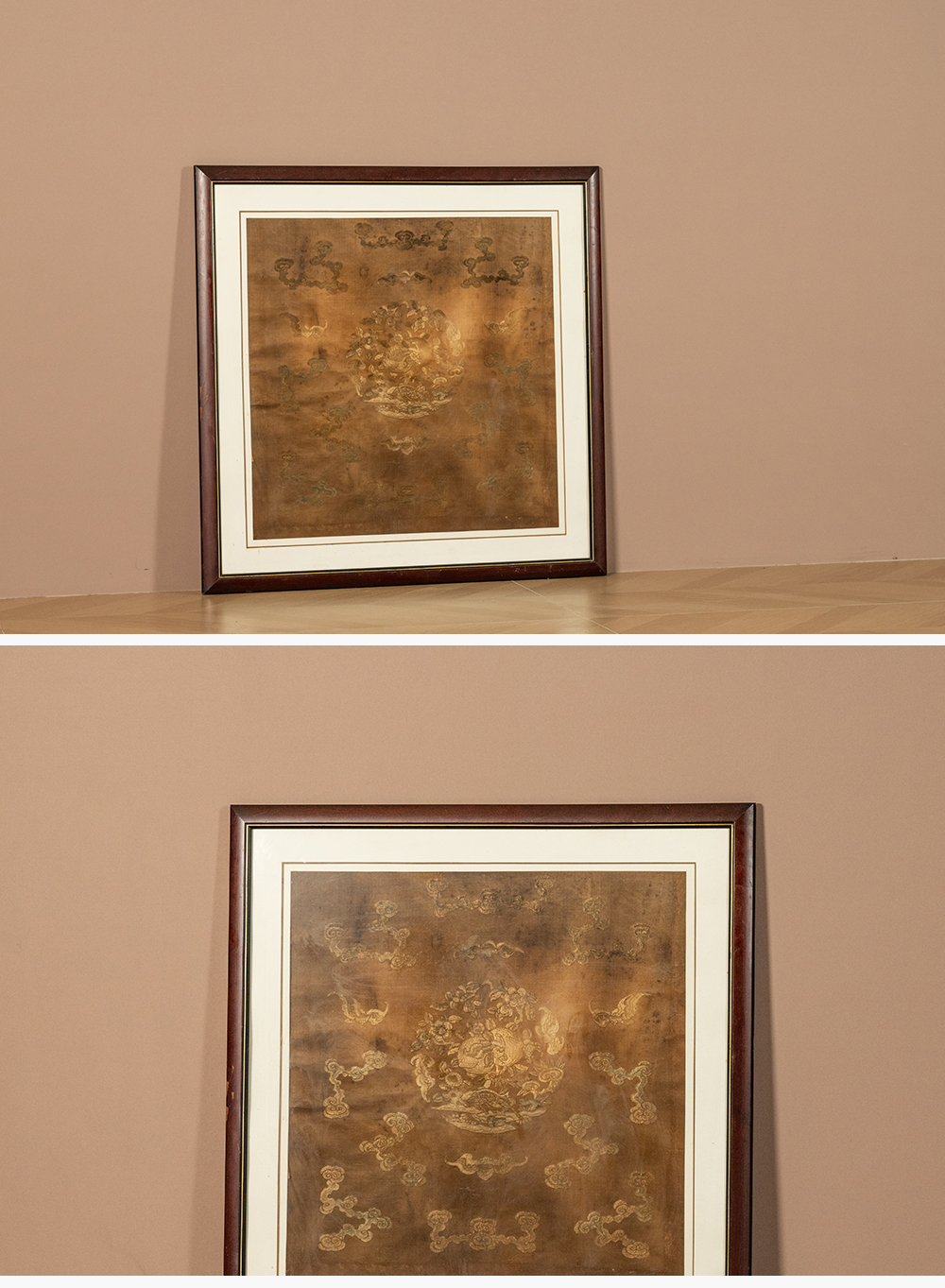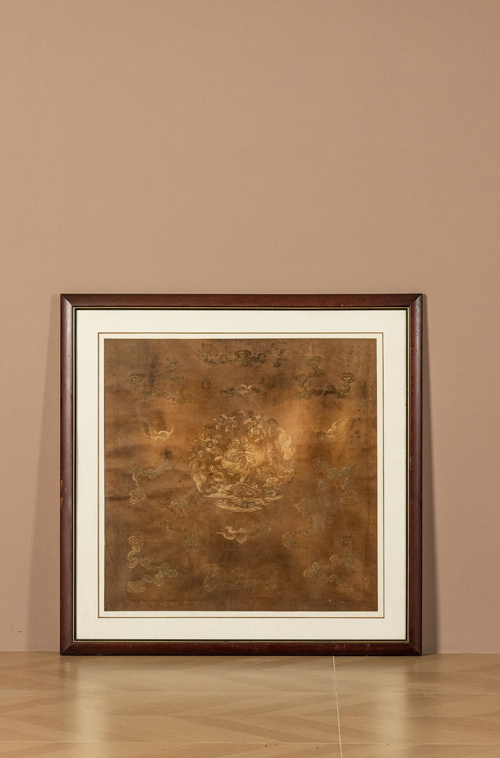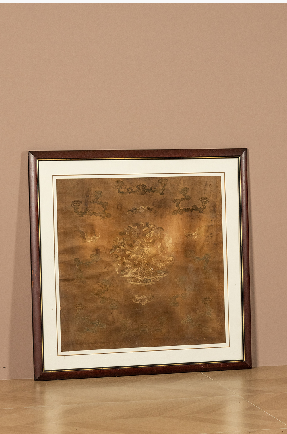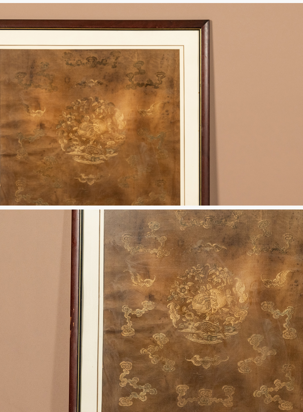 清 蝠寿纹绣片挂屏