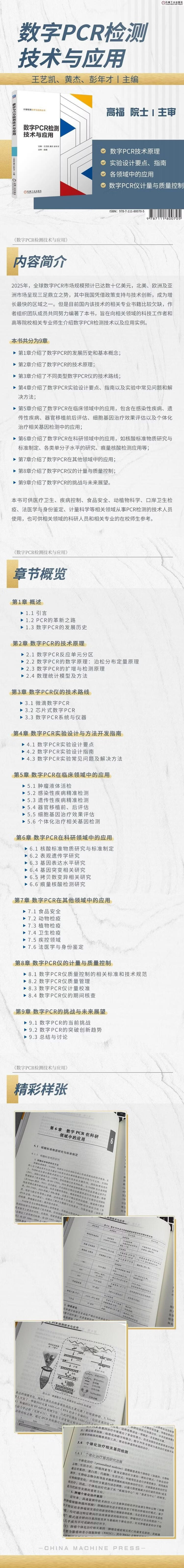 2)主要内容包括概述、数字PCR的技术原理、数字PCR仪的技术路线、数字PCR实验设计与方法开发指南、数字PCR在临床领域中的应用、数字PCR在科研领域中的应用、数字PCR在其他领域中的应用、数字PCR仪的计量与质量控制、数字PCR的挑战与未来展望。