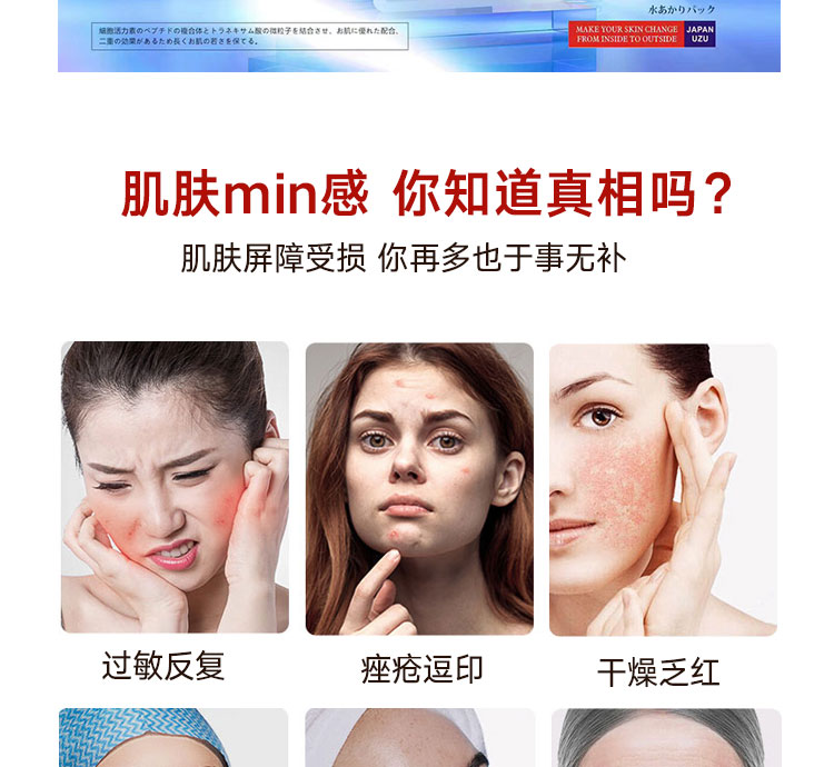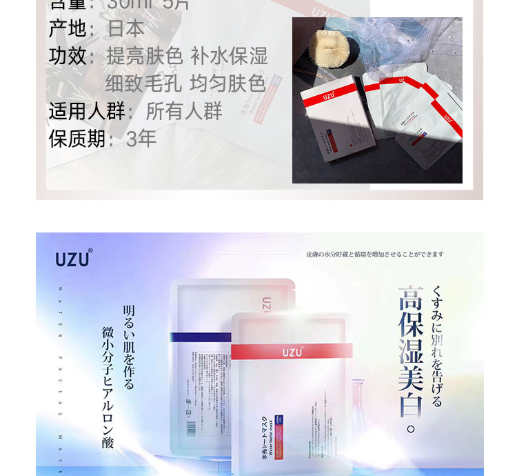 UZU水光贴片面膜保湿紧致修复敏感改善暗沉细致毛孔焕颜5片