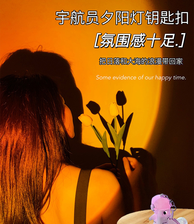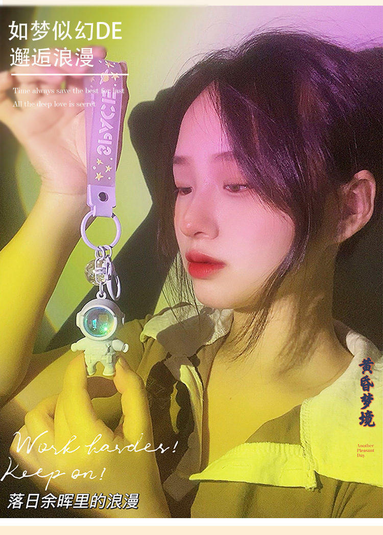 宇航员夕阳落日氛围灯钥匙扣挂件精致情侣背包挂饰礼品