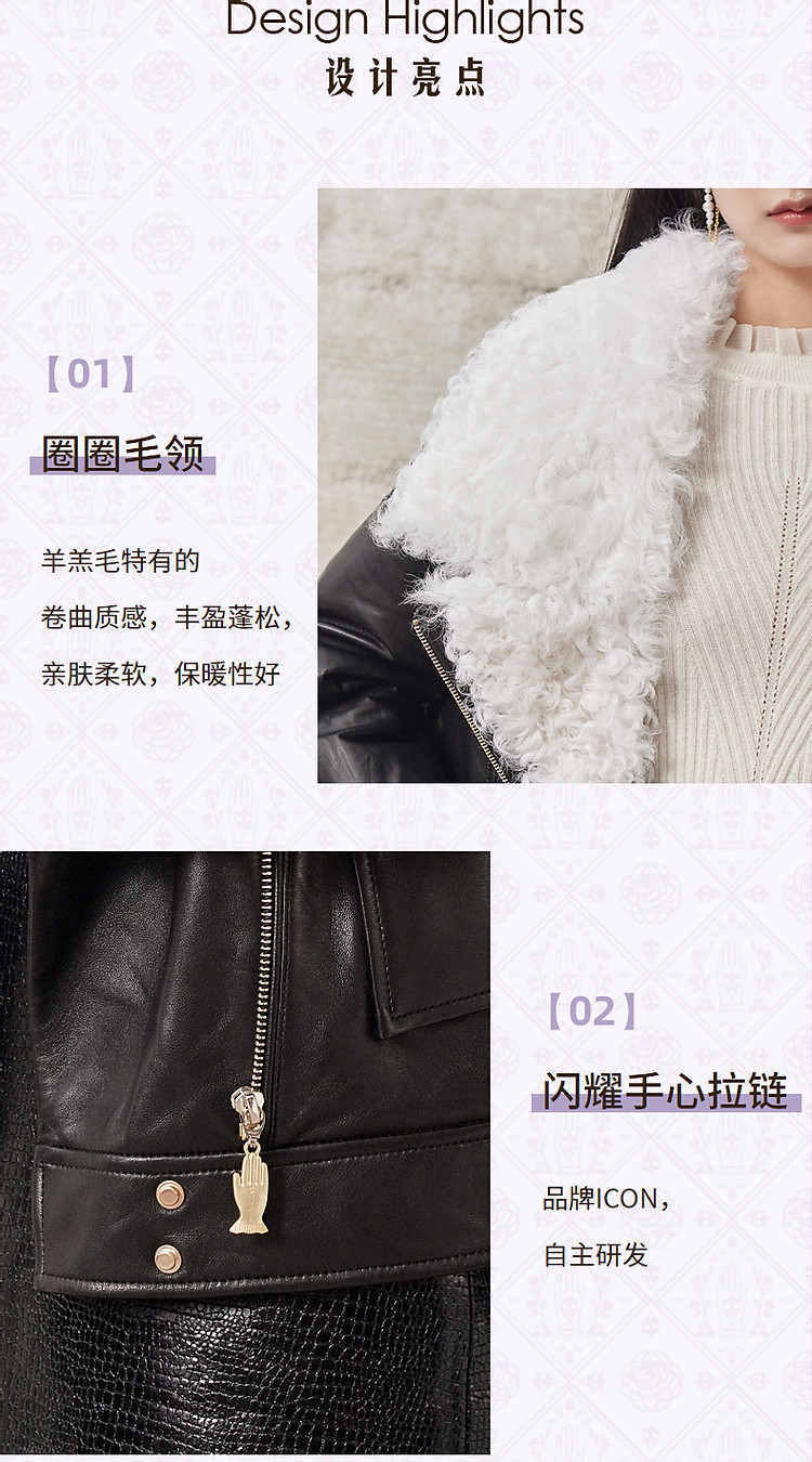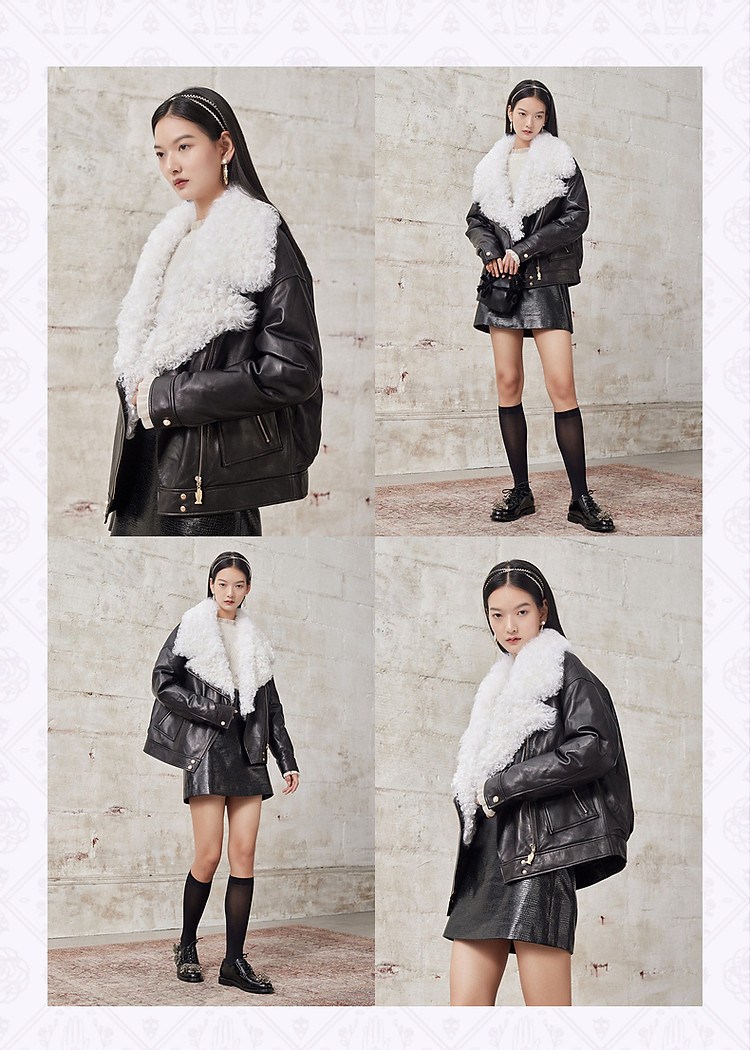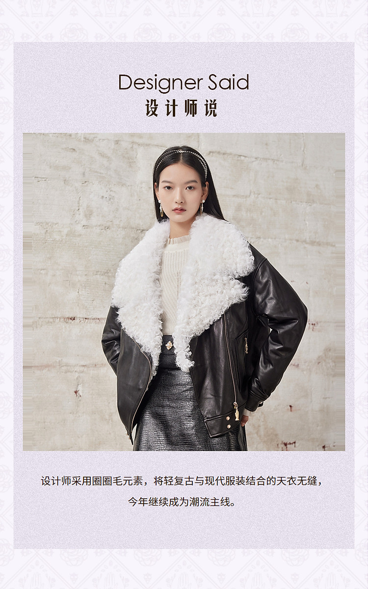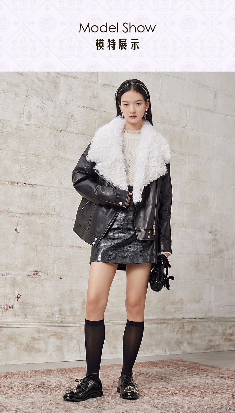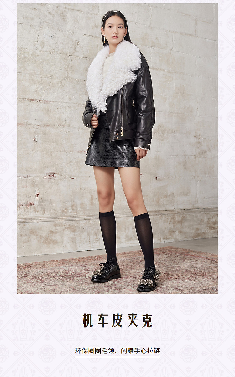 羊羔毛拼接机车服冬季短夹克外套女MG8343290111JA0A90