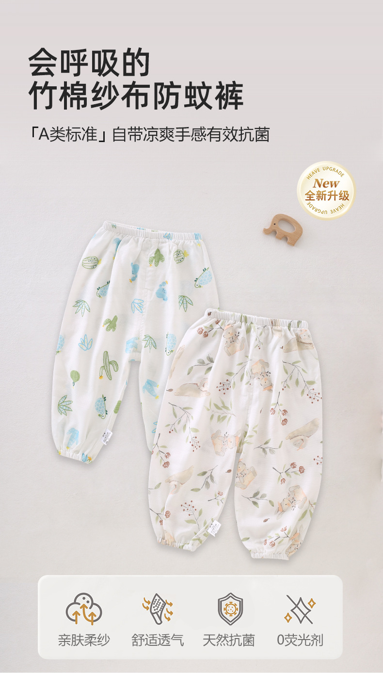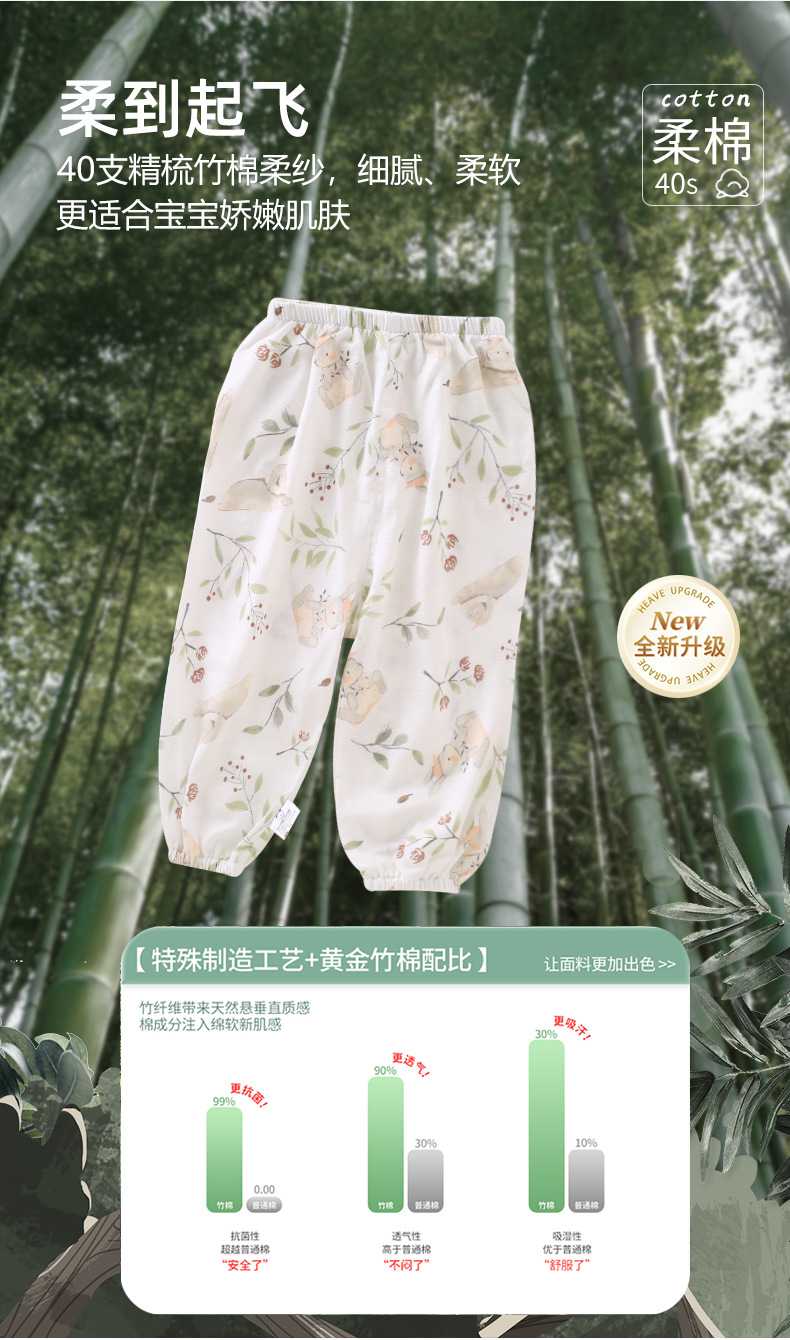 【泡芙般软感,A类标准防蚊裤!】婴儿夏季长裤竹纤维薄款宝宝空调裤,儿童睡裤夏装防蚊裤男女童裤子-lm!