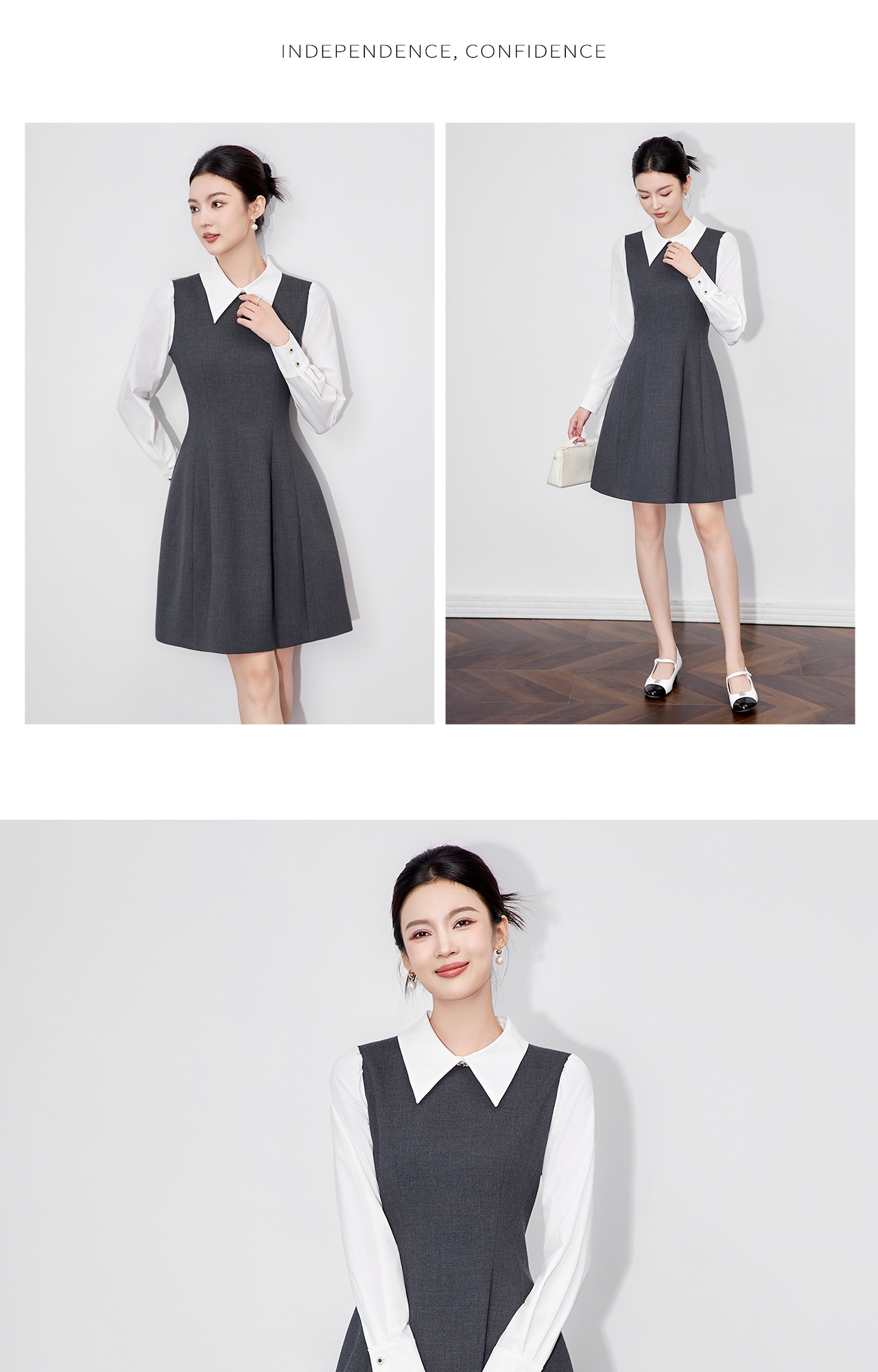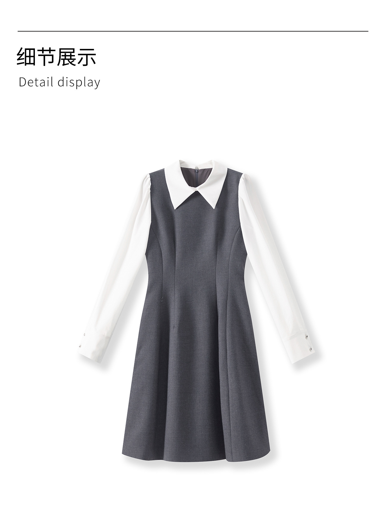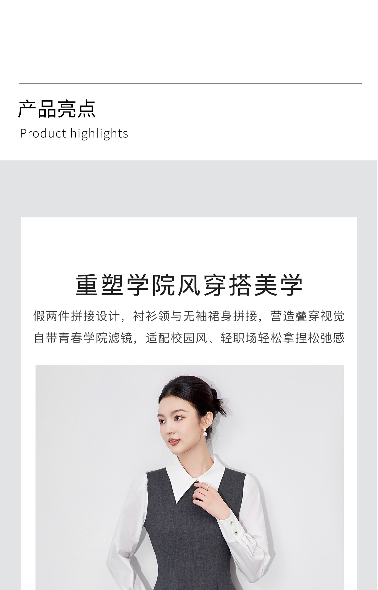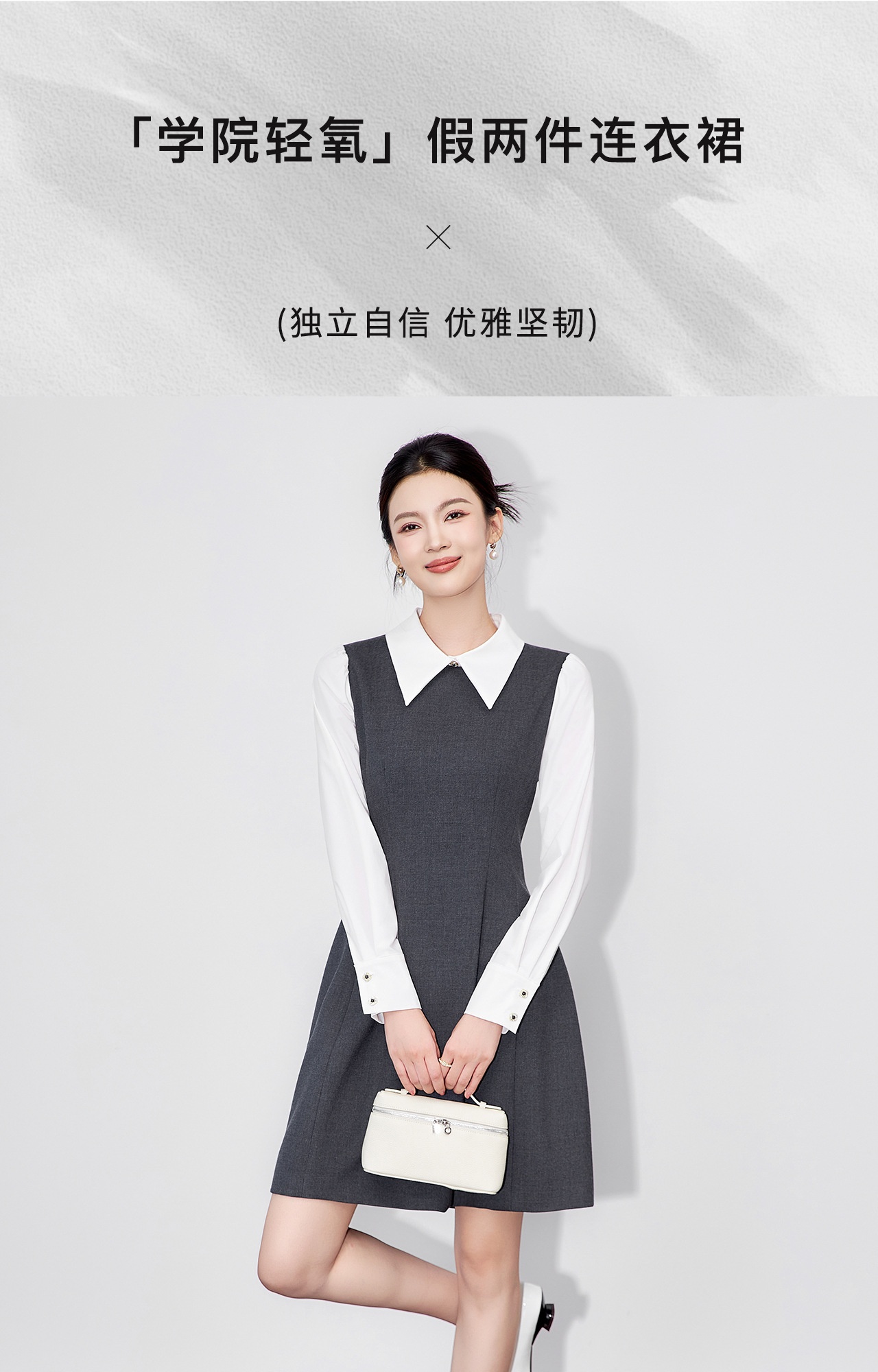 「高货wl」全新升级【铂金会员358/天猫479/差价121】(00833)洛诗琳复古学院风翻领连衣裙2025秋季假两件气质收腰A字裙