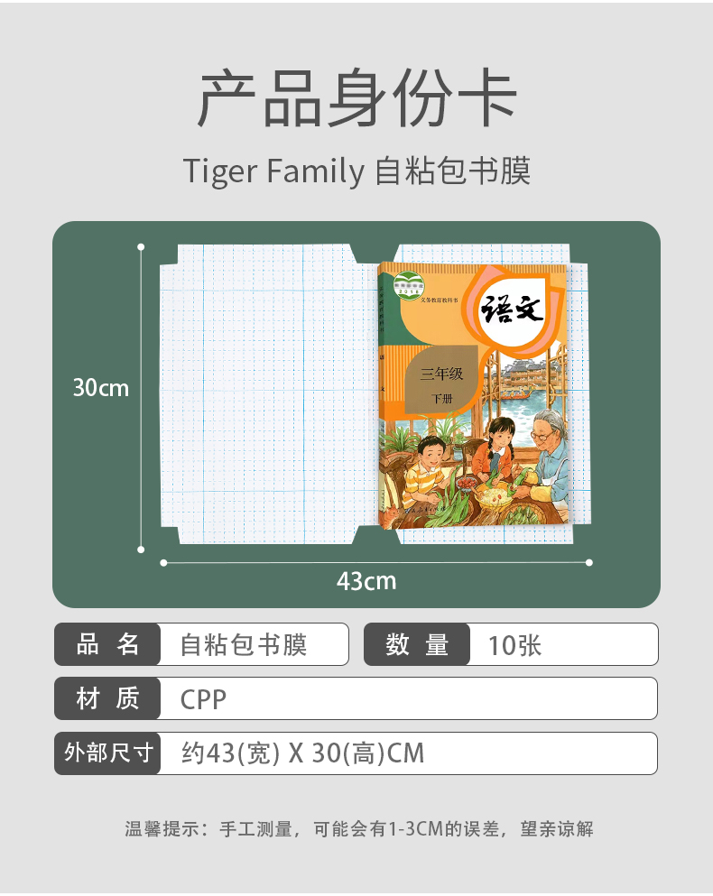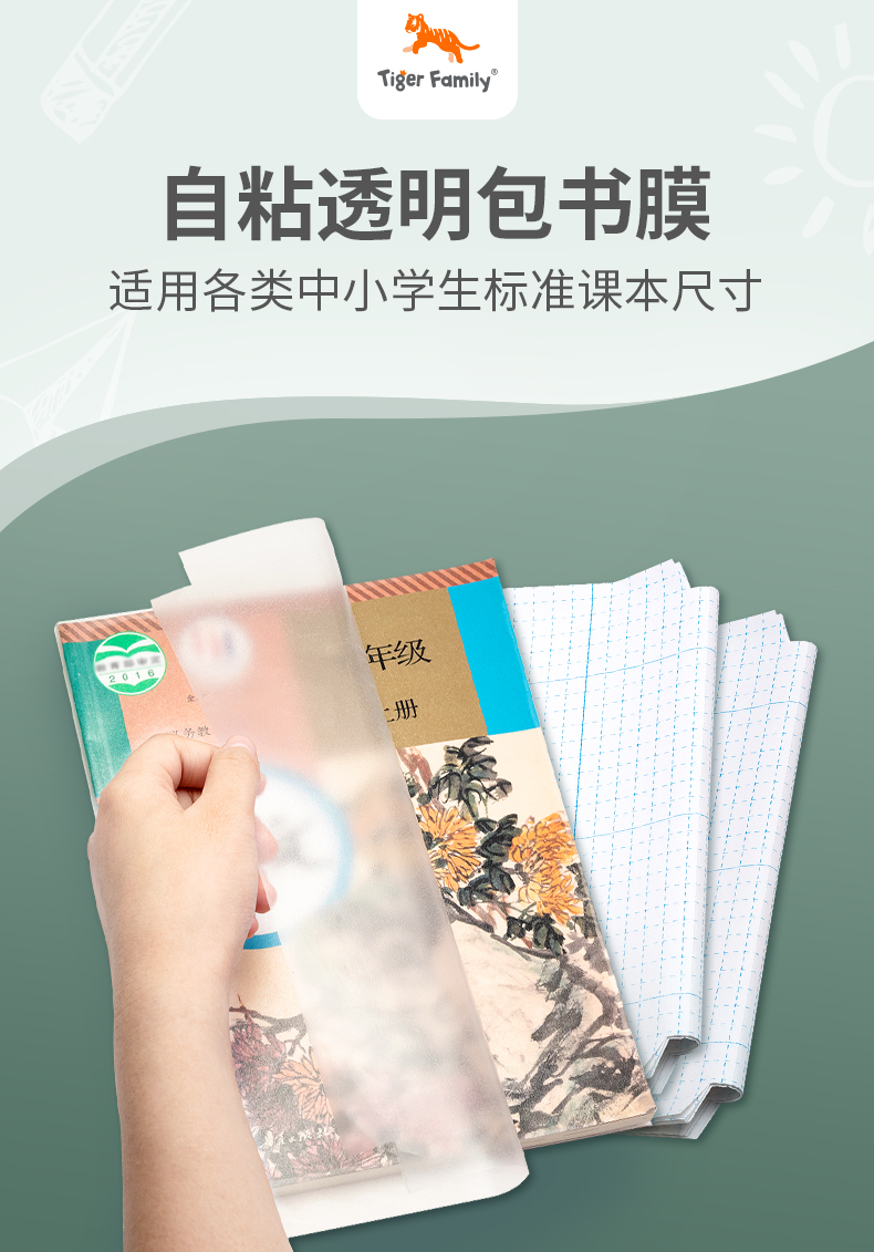 tigerfamily虎米 包书膜自粘透明16k磨砂防水文具书套1-5年级中小学生书本保护书壳