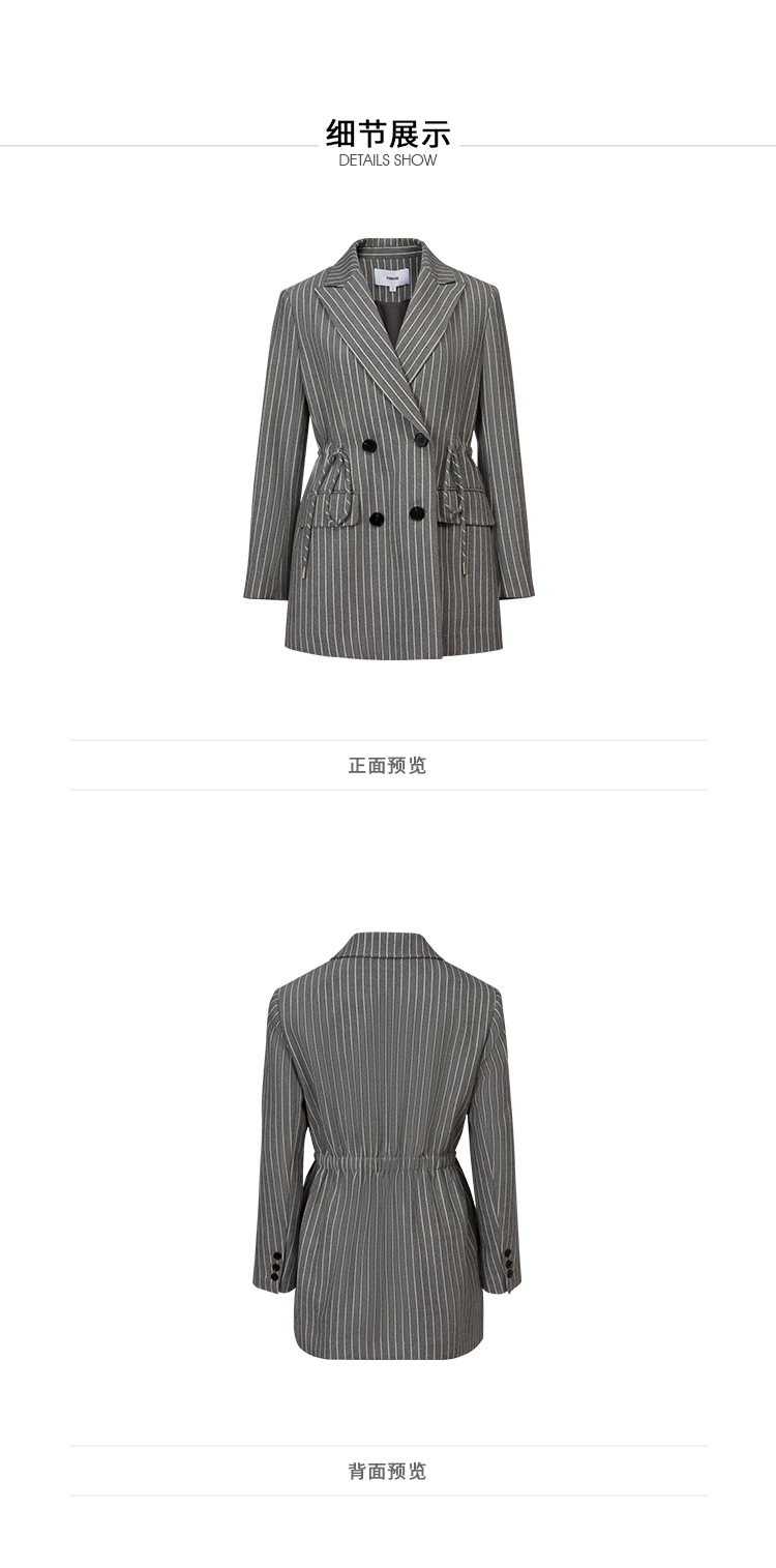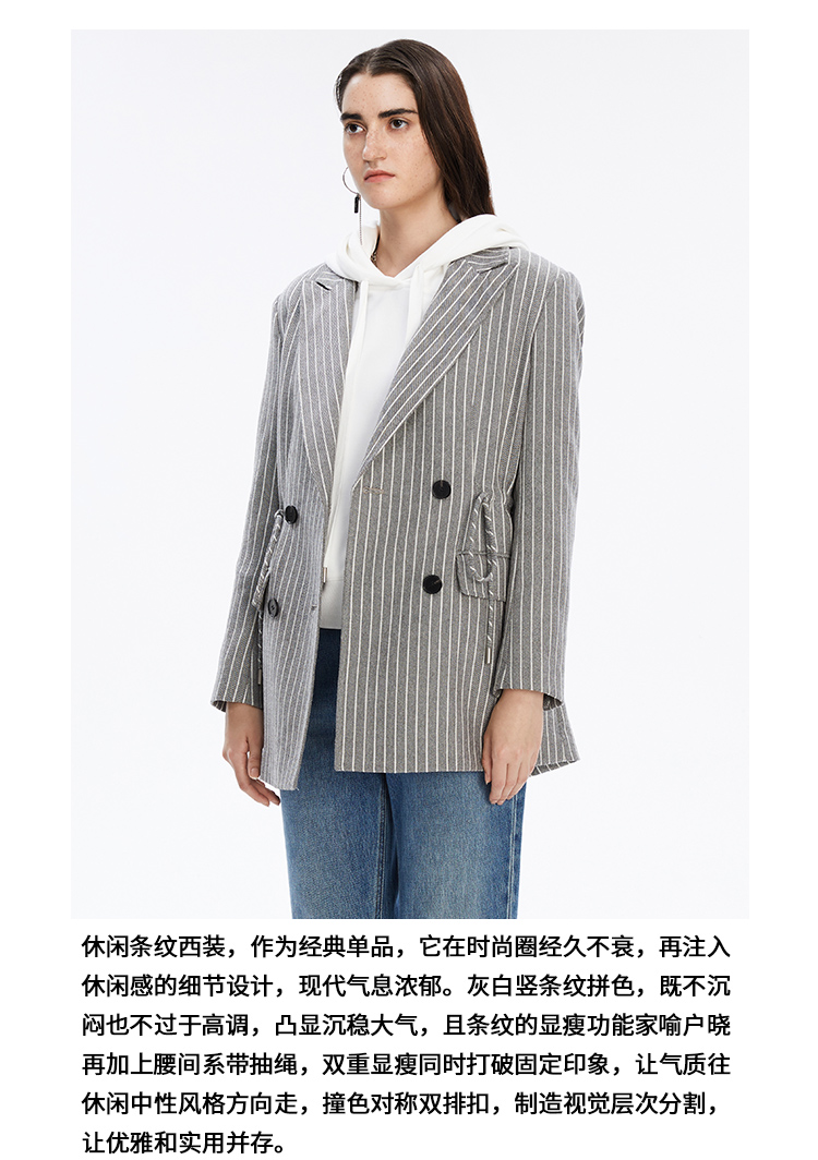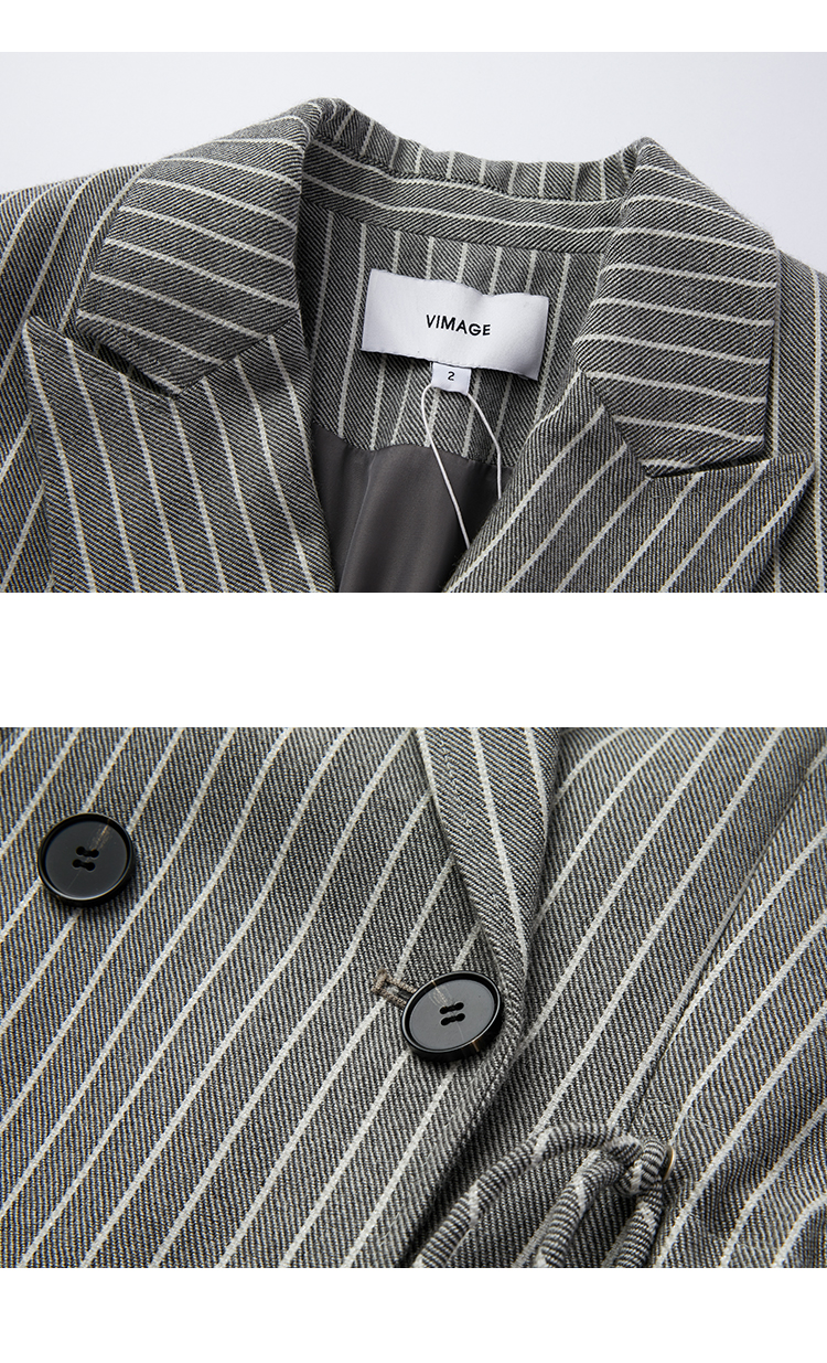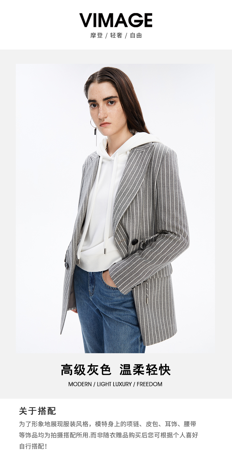 VIMAGE纬漫纪秋冬新款条纹修身休闲女士西装双排扣外套V1603223